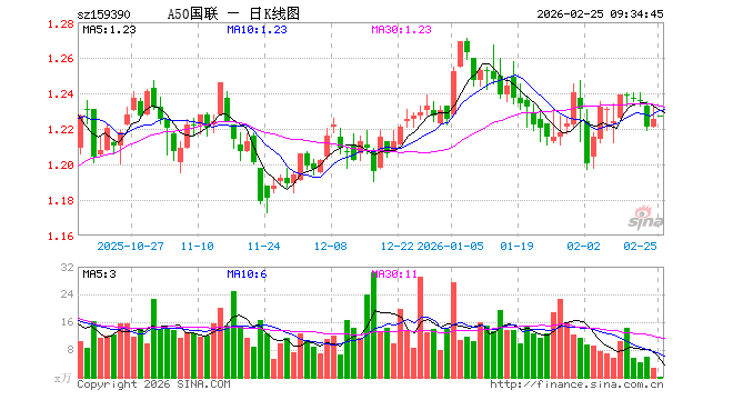 2月25日,中证A50ETF国联(159390)开盘涨0.16%,报1.227元。中证A50ETF国联(159390)重仓股方面,宁德时代开盘涨0.48%,贵州茅台涨0.22%,中国平安涨0.31%,中际旭创跌0.72%,紫金矿业涨0.20%,招商银行跌0.10%,美的集团涨0.96%,长江电力涨0.12%,立讯精密跌0.16%,中信证券涨0.04%。