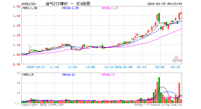 2月25日,油气ETF博时(561760)开盘跌1.05%,报1.415元。油气ETF博时(561760)重仓股方面,中国海油开盘涨0.21%,中国石油涨0.45%,中国石化跌0.15%,杰瑞股份涨0.00%,招商轮船涨4.33%,广汇能源涨0.35%,中远海能涨4.40%,洲际油气涨0.74%,海油工程跌2.28%,招商南油涨0.00%。
