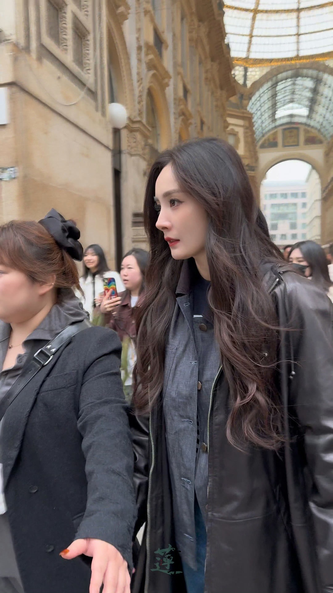 米兰偶遇杨幂逛店杨幂米兰探店路透,好多人啊,生图状态太顶了