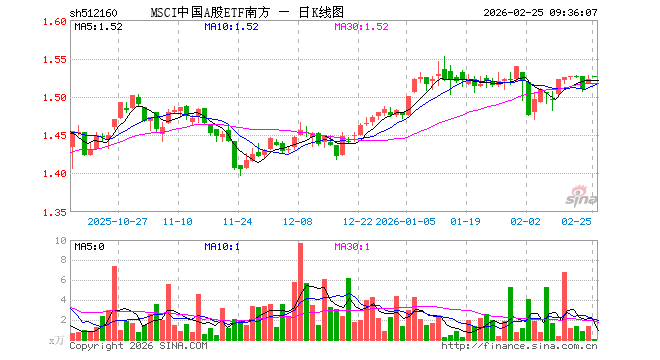 2月25日,MSCI中国A股ETF南方(512160)开盘涨0.26%,报1.526元。MSCI中国A股ETF南方(512160)重仓股方面,贵州茅台开盘涨0.22%,宁德时代涨0.48%,招商银行跌0.10%,工业富联涨0.78%,中国平安涨0.31%,紫金矿业涨0.20%,中际旭创跌0.72%,长江电力涨0.12%,农业银行涨0.15%,寒武纪涨0.79%。
