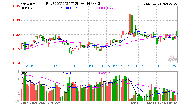 2月25日,沪深300ESGETF南方(560180)开盘涨1.51%,报1.212元。沪深300ESGETF南方(560180)重仓股方面,贵州茅台开盘涨0.22%,中际旭创跌0.72%,宁德时代涨0.48%,招商银行跌0.10%,中国平安涨0.31%,美的集团涨0.96%,紫金矿业涨0.20%,长江电力涨0.12%,兴业银行涨0.11%,比亚迪涨0.02%。
