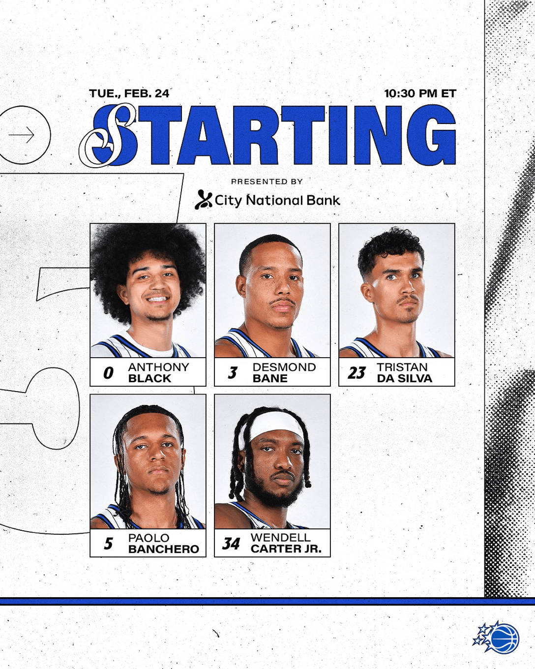 魔术首发:布莱克、贝恩、达席尔瓦、班凯罗、卡特