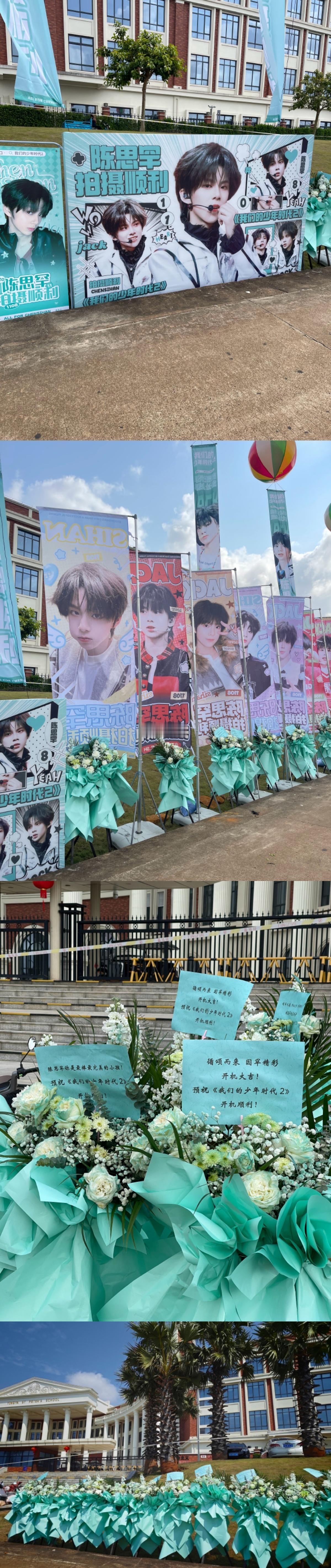 我们的少年时代2开机日TF四代各家应援排面拉满!无人机、花篮、注水旗、空飘、甜品应有尽有,大家都爱孩子第一名!你最期待谁的角色?、、、、、、、TF四代少年时代2开机应援