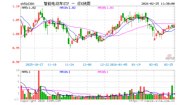 2月25日,截止午间收盘,智能电动车ETF(516380)涨0.88%,报1.032元,成交额64.21万元。智能电动车ETF(516380)重仓股方面,宁德时代截止午盘涨0.99%,比亚迪涨1.07%,立讯精密涨1.07%,三花智控跌2.16%,汇川技术跌0.56%,赛力斯涨0.93%,豪威集团涨0.72%,亿纬锂能涨2.98%,拓普集团跌0.95%,华友钴业涨6.55%。