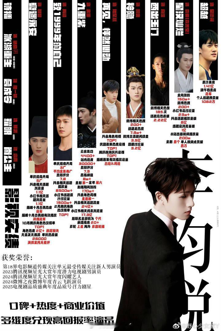 李昀锐影视实绩,待播剧以及商务汇总。存货里好几部让人期待满满商业价值一路走高!颜