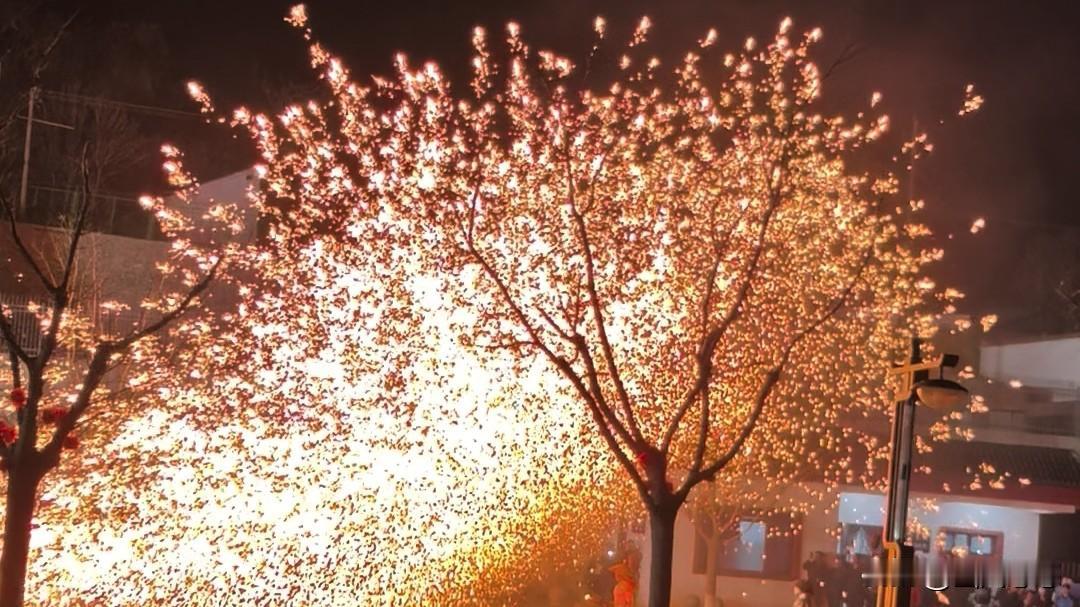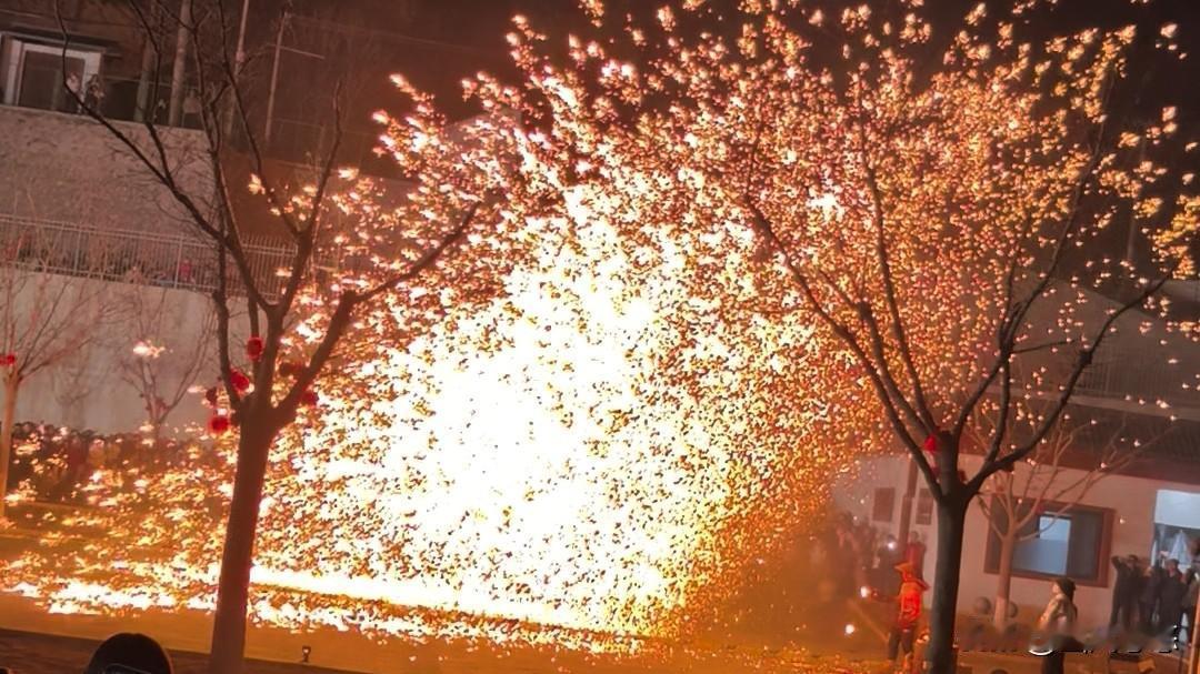 为延续春节的喜庆氛围,展现群众文化的蓬勃活力,陕西旬邑举办了丰富多彩的群众文化活动。其中,泰塔文化广场上的打铁花技艺表演尤为吸睛,引得众多群众纷纷前往观赏。 打铁花起源于祭鬼驱祟的仪式。北宋时期,它逐渐演变为祭祀天地神灵、祖宗的仪式。后来,在升迁、嫁娶、新宅奠基、祝寿、金榜题名、新业开张等喜庆场合,人们会通过打铁花技艺表演来表达祝贺。 打铁花时,艺人用木棒猛击盛着1600度高温铁水的棒,让棒中铁水冲向空中,四散开来,恰似天女散花。一簇簇银花在天空中绚烂绽放,色彩缤纷;又像金蛇狂舞,变幻多姿。 人们利用“花”与“发”的谐音,取“打花打花,越打越发”之意,寄托了财源广进、福气满满、富贵安康、遍地生金的美好愿望。 如今,铁花绽放的火光寓意着五谷丰登、兴旺发达、国泰民安,也象征着人们对美好生活的向往与期盼。