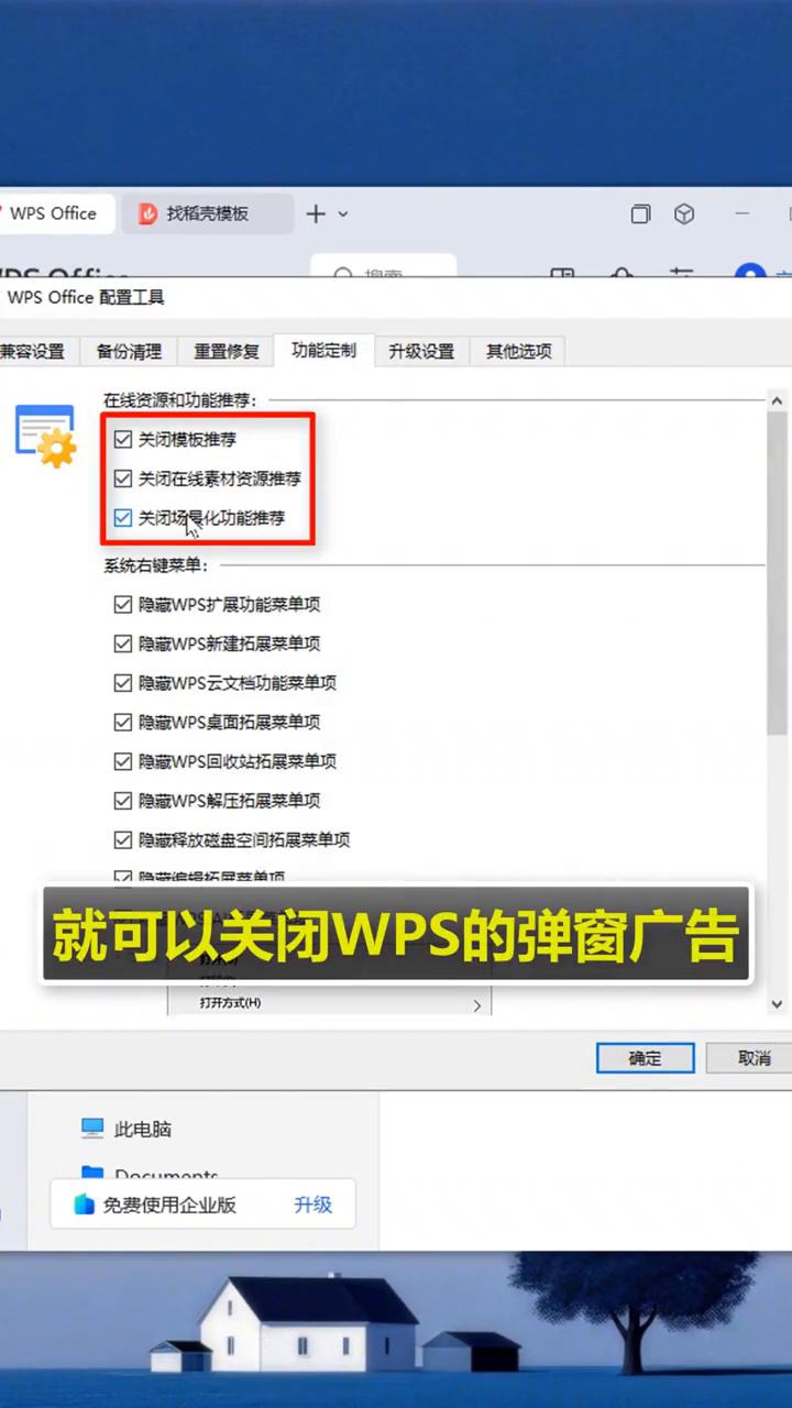 WPS如果不登录账号,所有功能无法正常使用。 WPS如果不登录账号,不开会员就无法正常使用所有功能。学会这招让你为所欲为,安排! ·只需要打开WPS,然后点击左上角的菜单,进入配置和修复工具。 ·然后点击高级,选择功能定制,顺带勾选这3个选项就可以关闭WPS的弹窗广告。 ·再点击这里的其他设置,勾选这个,最后点击确定就可以正常使用啦。