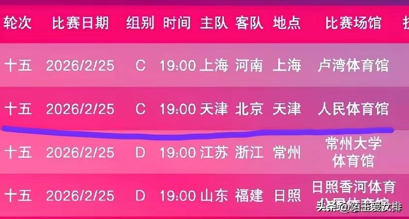 女子排超联赛季后赛今天开赛: 排协今年还是很不错的 开赛第一天就安排了四场比赛 而且都是央视频直播,时间也都一样 都是今天晚上七点开赛,不分彼此 四场比赛分别是: 上海女排主场迎战河南女排 天津女排主场迎战北京女排 江苏女排主场迎战浙江女排 山东女排主场迎战福建女排 上海女排和河南女排的比赛胜负悬念不大 天津女排和北京女排的比赛才是关键 一个在常规赛第四,一个第五 两队实力差不多,而且北京女排还换了主教练 相信这场比赛肯定会精彩纷呈 江苏女排应该会战胜浙江女排 虽然两队在常规赛没有交手 但是江苏女排实力强大 山东女排和福建女排的比赛悬念估计也不大 毕竟山东女排的实力也是不容小觑 福建女排也是差点去打升降赛 期待今天晚上的比赛,加油!加油!加油!