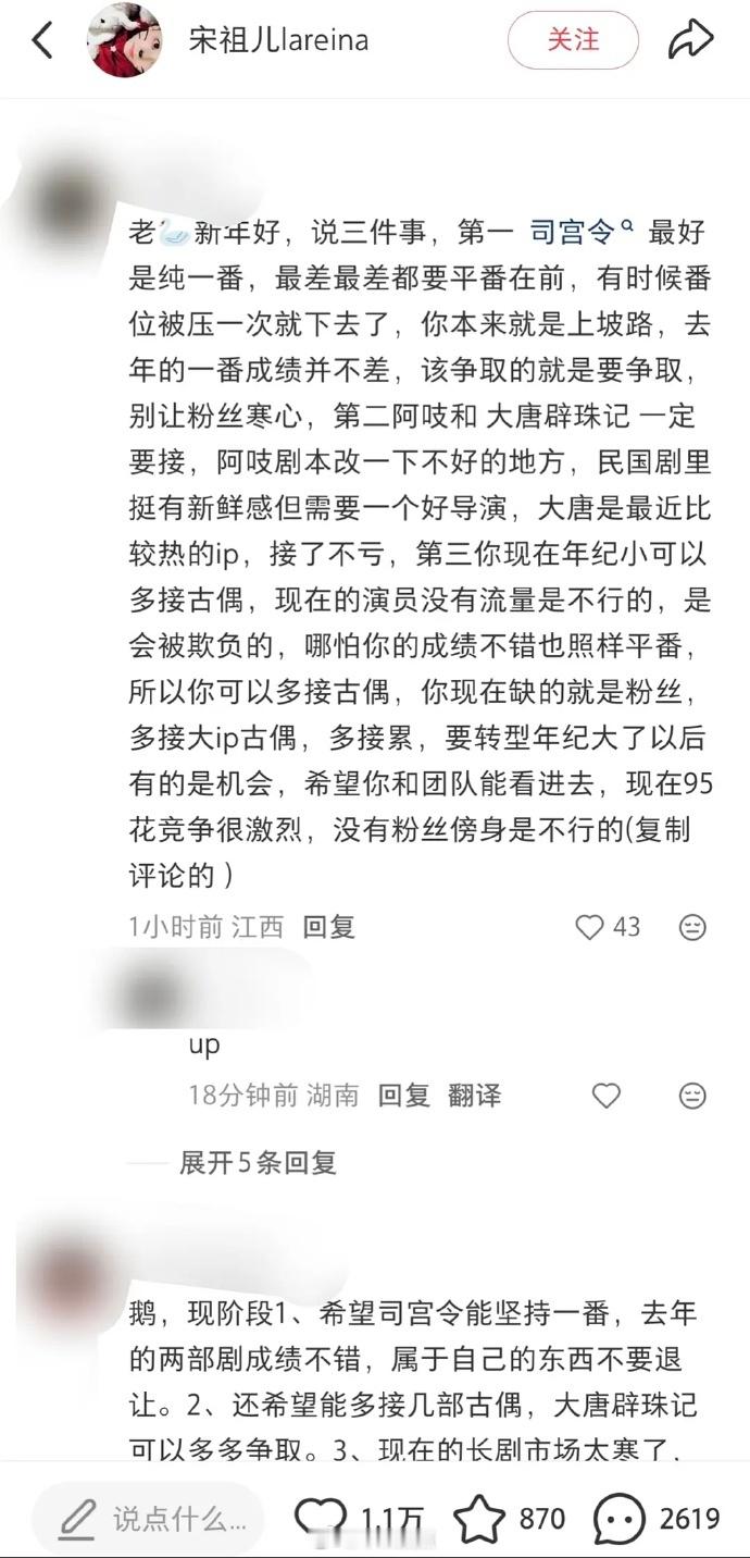 🦢宋祖儿评论区沦陷了,粉丝让她确保司宫令一番。花粉还是想要一⛵️的