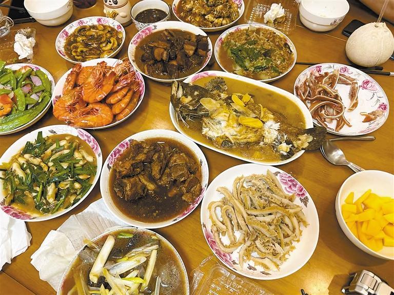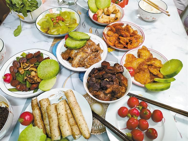 鱼虾鲜嫩,肉香醇厚,炸物酥脆,素菜清爽……“年味儿就是家的味道,我家六口人:软炸虾、烧带鱼、清炒蔬菜、熏卤拼盘,外加一盘蘸酱菜,做饭的人不累,还能吃得营养均衡、心满意足,还不容易浪费。”在网友“努力享受恩典的胖紫”看来,“老式”年夜饭的魅力就在于“家常”二字,没有精致的摆盘,没有昂贵的食材,只有一家人忙前忙后的身影、欢声笑语的喧闹,就能绘出最鲜活、最动人的年俗模样。