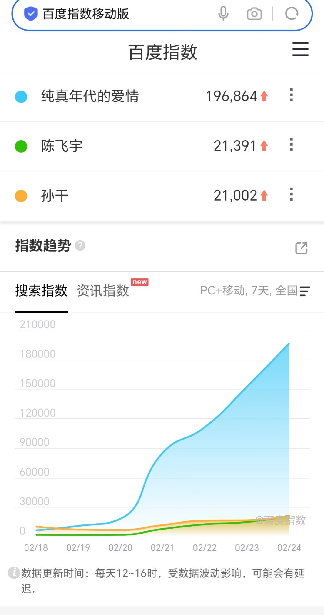 纯真年代还真发笑起来了收视四连涨,百指一直涨,微指破亿昨天热度破2万5,今天2万