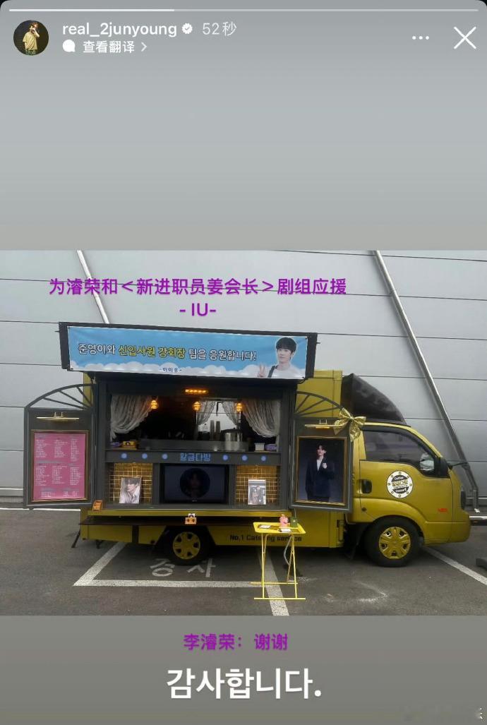 IU为李濬荣送咖啡车苦尽柑来遇见你金明英凡售后 《苦尽柑来遇见你》金明、英凡新售后🈶!IU今日为李濬荣送应援咖啡车,“致就算不会盛锅巴汤,但诠释角色永远是最棒的英凡,啊不是,濬荣——金明。”李濬荣回复:“金明啊对不起,还有谢谢!”一年了英凡还在道歉(翻译cr汐玫依)