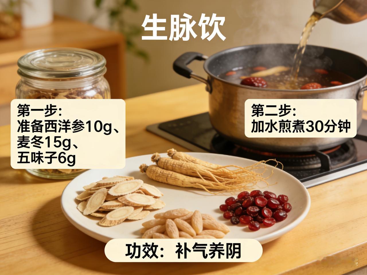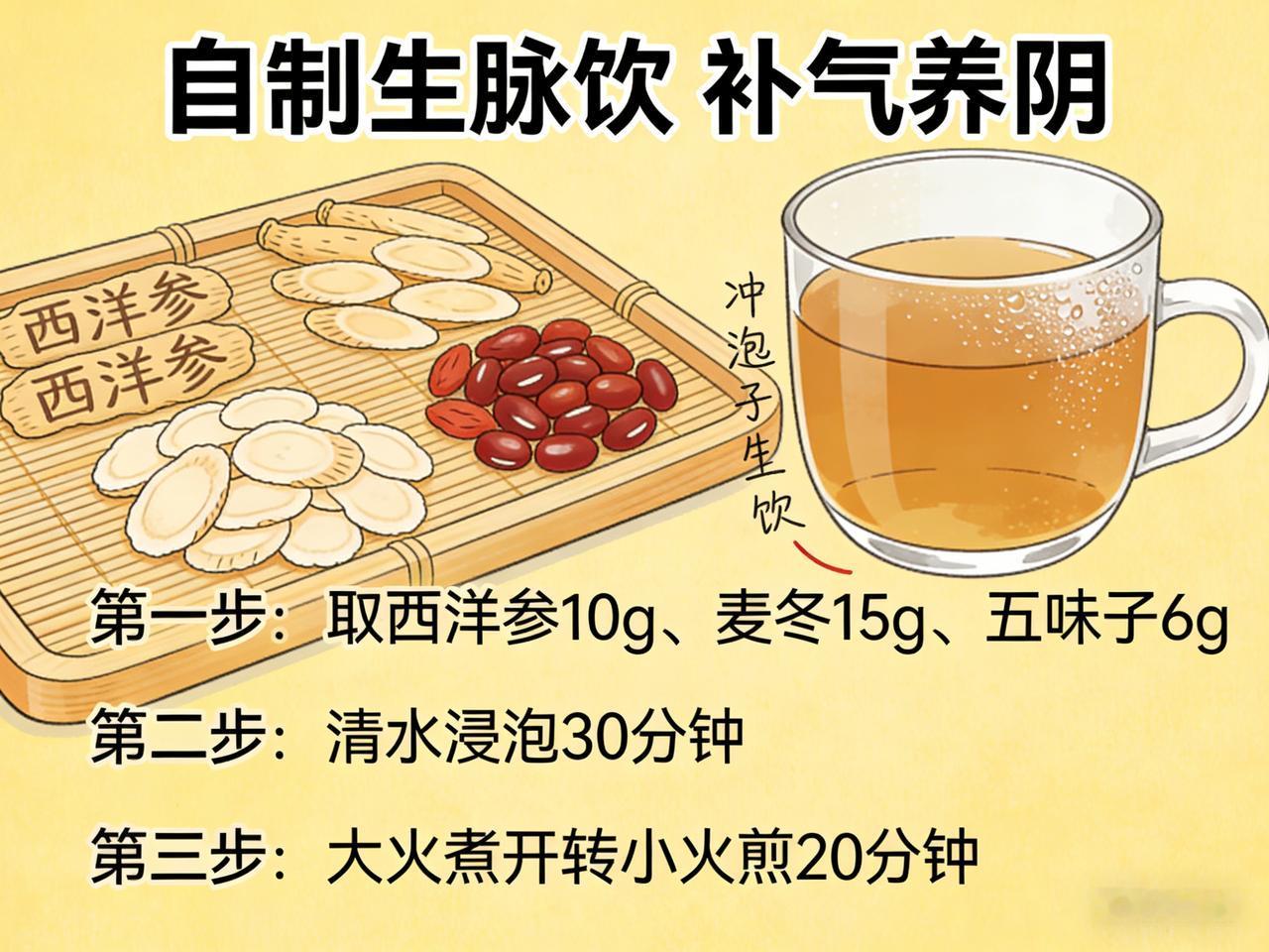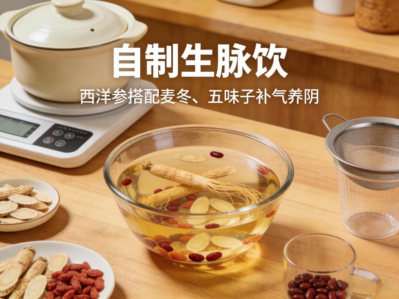 西洋参搭配这些食材,自制 “生脉饮” 补气养阴 西洋参巧搭,生脉饮补气养阴有奇效 在传统养生领域,补气养阴是维持身体健康、提升生命活力的重要环节。而西洋参,作为一味备受推崇的中药材,在补气养阴方面有着独特的功效,当它与特定药材巧妙搭配制成“生脉饮”,更是能发挥出令人惊喜的养生作用。 西洋参性凉,味甘微苦,归心、肺、肾经,具有补气养阴、清热生津的功效。它不像人参那样温热,更适合大多数人日常调理使用,尤其是那些体质偏热、容易上火,同时又需要补气养阴的人群。 生脉饮的经典搭配除了西洋参,还有麦冬和五味子。麦冬性微寒,能养阴润肺、益胃生津、清心除烦。它与西洋参搭配,就像是一对默契的伙伴,西洋参侧重于补气,麦冬则专注于养阴生津,二者相互协同,共同增强补气养阴的效果,能有效改善因气阴两虚导致的口干舌燥、心烦失眠等症状。 五味子则起到了收敛固涩、益气生津、补肾宁心的作用。它就像一个“守护者”,能将西洋参和麦冬补益的气阴牢牢地锁在体内,防止其过度耗散。同时,五味子还能调节人体的神经系统,缓解紧张焦虑的情绪,让身心得到放松。 将西洋参、麦冬和五味子按照一定比例搭配,加水煎煮后制成生脉饮,口感清新,带有微微的甘苦。日常饮用,不仅能补气养阴,增强身体的免疫力,还能改善疲劳、乏力等亚健康状态。对于经常熬夜、工作压力大的人群来说,生脉饮就像是一杯“能量补给汤”,帮助他们恢复元气,以更好的状态投入到生活和工作中。