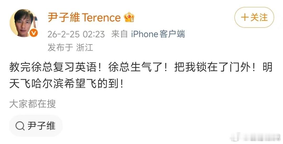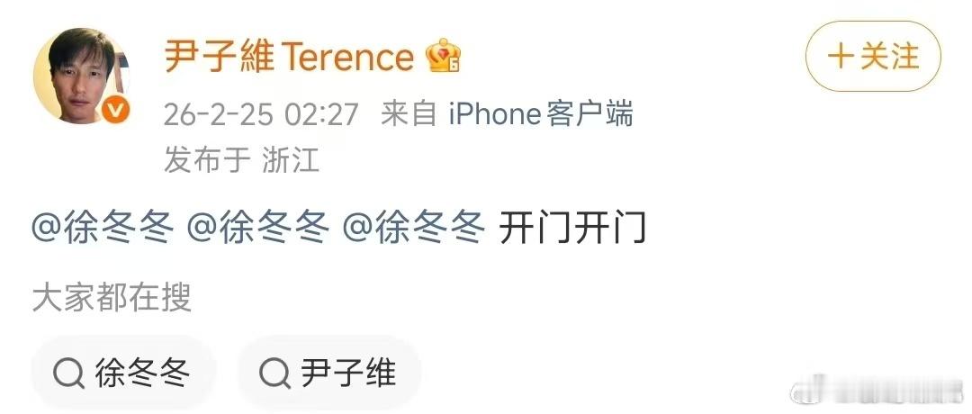 徐冬冬把尹子维锁门外了 别人秀恩爱是浪漫,他俩秀恩爱是锁门外加在线喊话,画风清奇又真实,越看越觉得好嗑