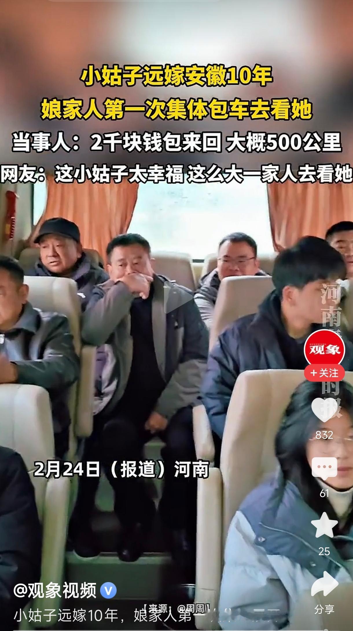娘家人驱车500公里看远嫁女子 这则故事反映了家庭成员之间深厚的感情和关爱。远嫁的女子能够受到娘家人的集体关心和陪伴,令人感到温暖和感动。 小姑子远嫁十年,娘家人首次集体包车前往看望她。 车程约500公里,花费大约2000元。 这次探望表达了娘家人对她的牵挂和关心。 网友评论认为小姑子很幸福,享受到家庭的爱与关怀。远嫁 远嫁女人心得