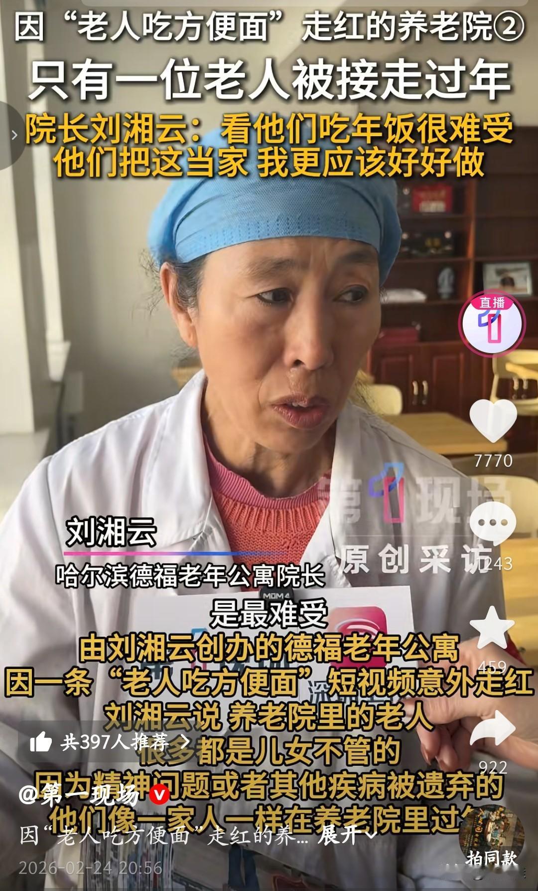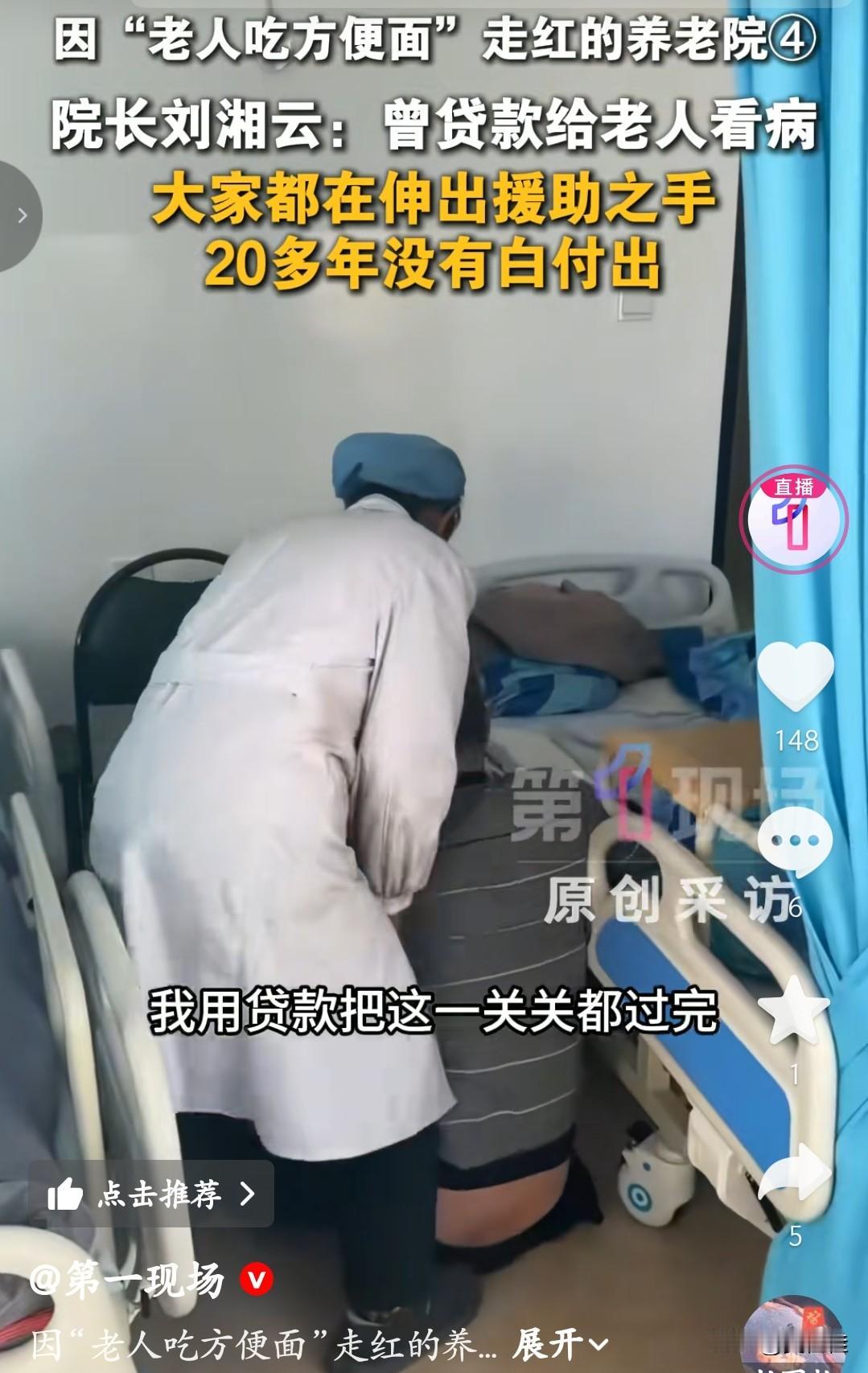 大家都知道李亚鹏创办嫣然天使儿童医院,为无数唇腭裂孩子带去希望。可很少有人知道,还有一位同样伟大的普通人——刘湘云,她用二十年坚守,守护着一群被遗忘的老人。 刘湘云照顾的养老院里,很多老人都是被家人忽略、甚至无人照料的。有的身患疾病,有的精神不便,他们最渴望的,不过是一份不被抛弃的温暖。 今年过年,只有一位老人被亲人接回家,除夕接走,大年初二就送了回来。老人们说:这里,才是我们真正的家。 在老人心里,刘湘云就是他们的孩子;而在刘湘云心里,这些老人早已是她的亲人。 最难的时候,是给老人们看病花钱,资金周转不开,没人愿意借钱给她,她硬是靠着贷款,一关关扛了过来,从没放弃过一位老人。 让她坚持下去的,是越来越多全国爱心人士伸出的援手,也是她心底那份未完成的牵挂。23岁那年,她失去了父亲,没能好好尽孝的遗憾,她全都弥补在了这些陌生老人身上。 二十年如一日,她没有惊天动地的名气,却用最朴素的善良,撑起了一群老人的晚年。 刘湘云,平凡,却无比伟大。