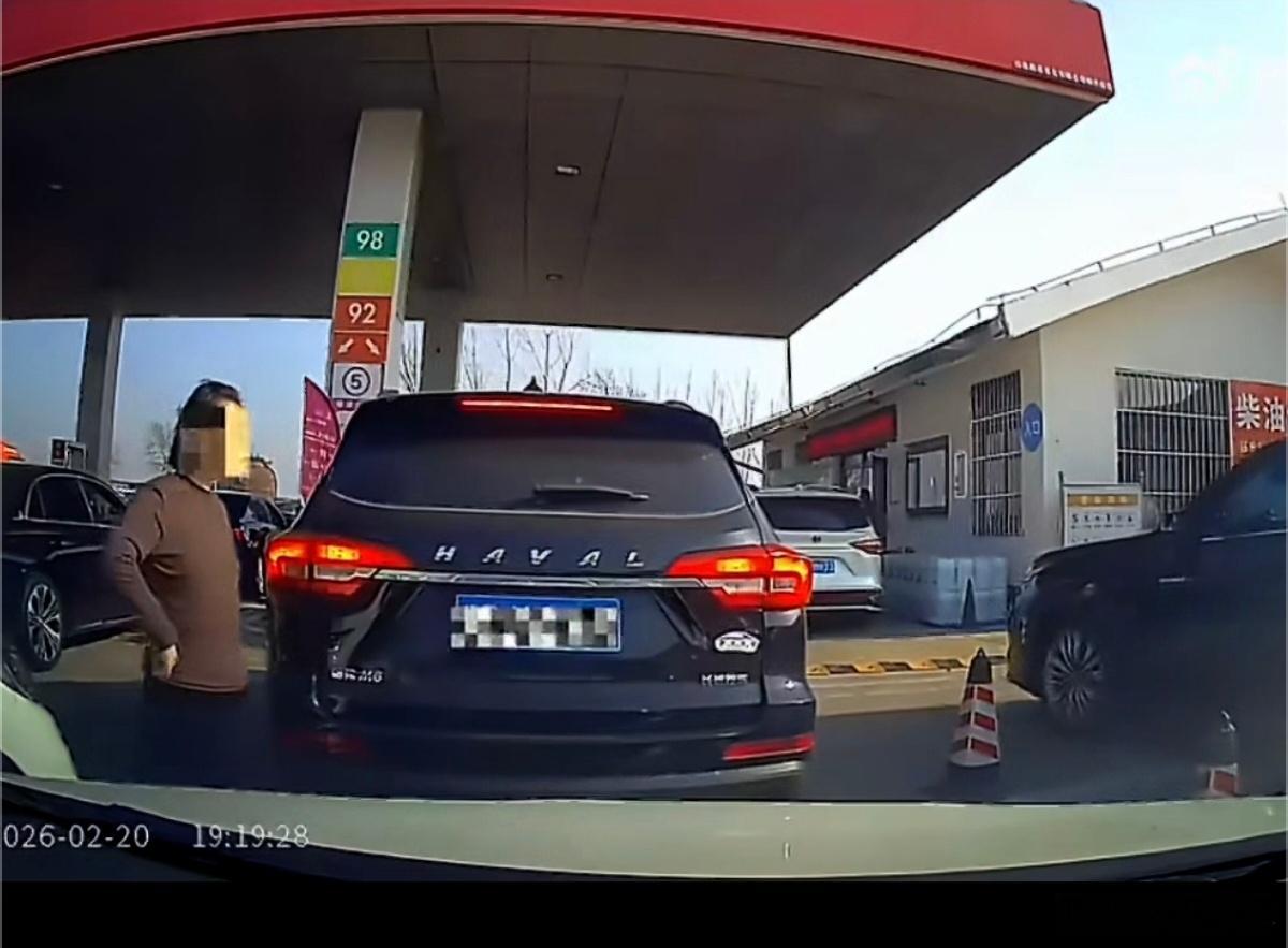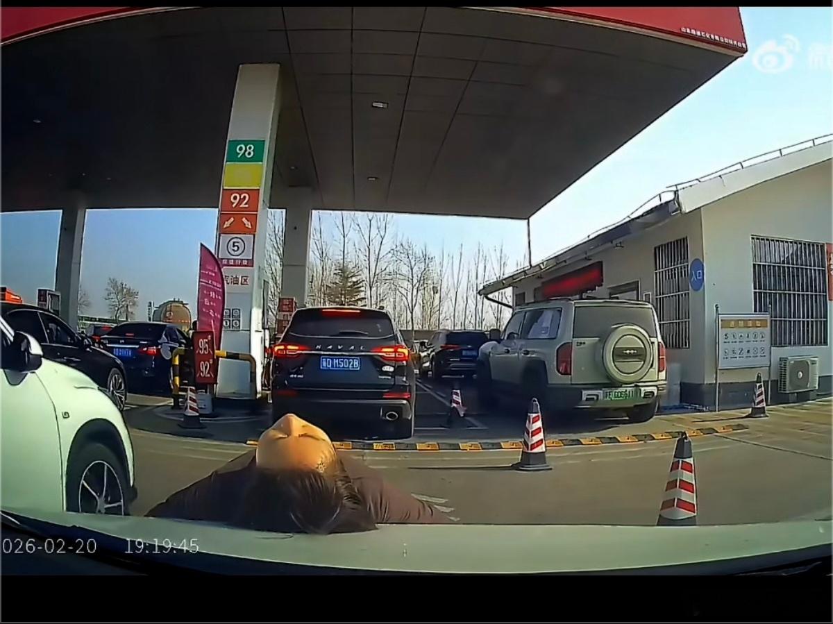 男子加油遇人肉加塞还被躺上引擎盖 一气呵成,加油站叉个腰走过来躺别人引擎盖子上插