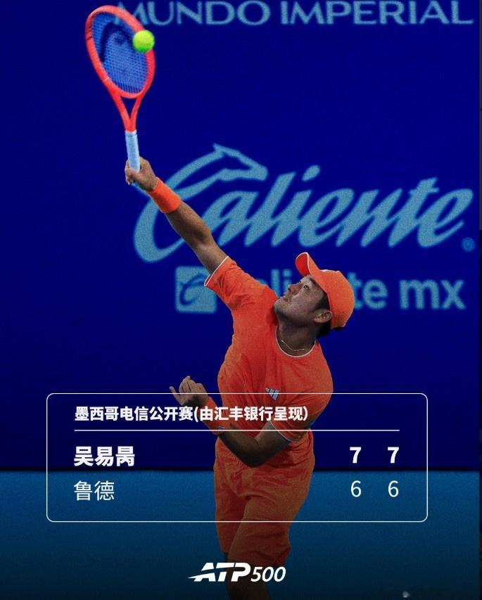 ATP500墨西哥电信公开赛首轮,从资格赛突围的中国选手吴易昺以7-6(2)7-6(1)战胜3号种子鲁德,职业生涯第三次击败TOP20球员,成功晋级第二轮,接下来他将对阵日本球员岛袋将。