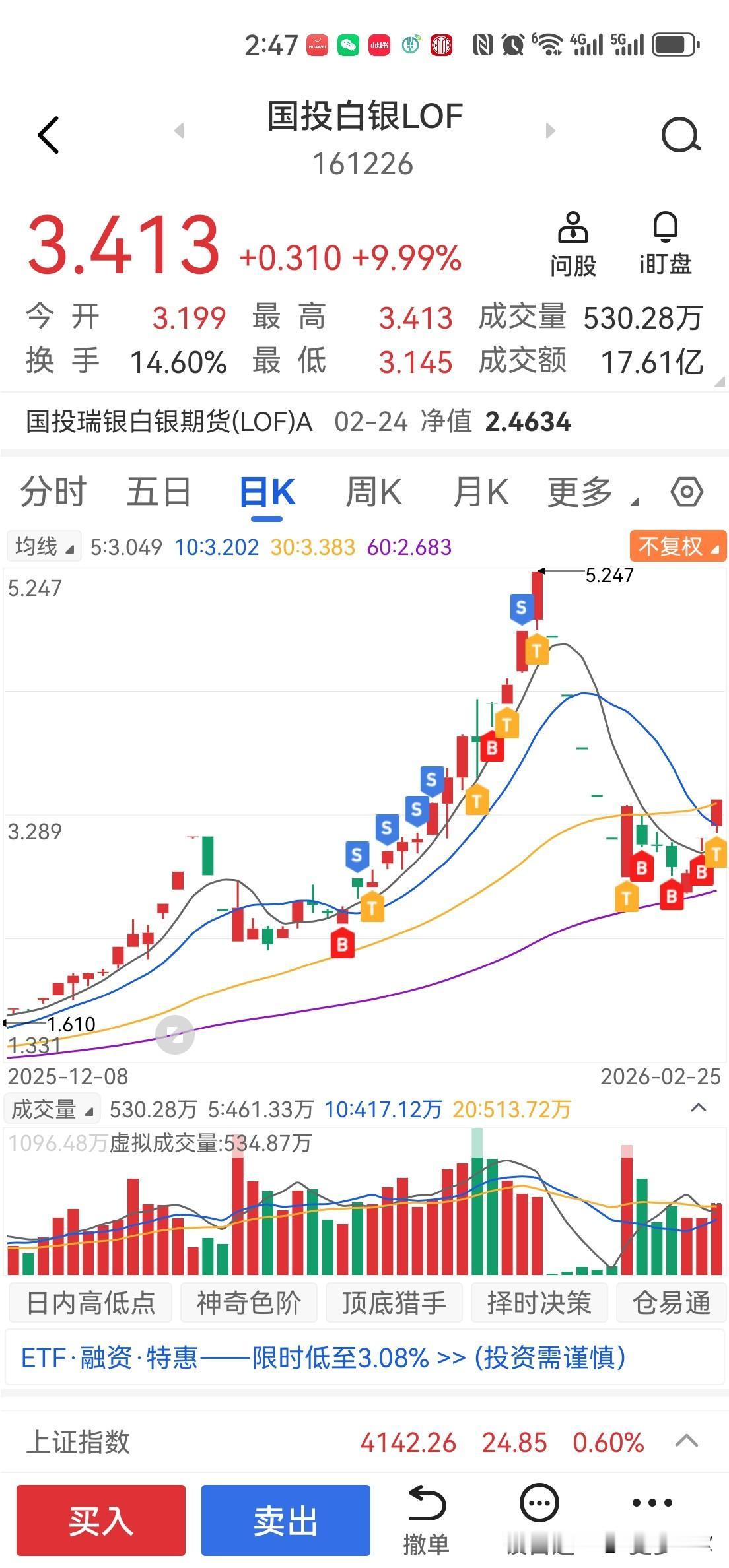 🔥白银狂飙!国投白银LOF获强力支撑,耐心持股就是胜利! 昨夜至今,国际银价一路狂飙,沪银期货暴涨超4%,纽约银同步大涨,而国投白银LOF(161226)今日也大涨近10%,强势表现引爆市场!这波行情,根本停不下来! 一、政策松绑,杠杆放大,行情再添一把火 就在2月24日,上海黄金交易所突然宣布下调黄金、白银延期合约的保证金比例和涨跌幅限制: - 黄金保证金从21%降至18%,涨跌幅从20%降至17% - 白银保证金从27%降至24%,涨跌幅从26%降至23% 这意味着什么?交易门槛降低,杠杆效应放大,市场流动性瞬间被激活!此前交易所连续上调保证金,是为了抑制过热的投机;如今下调,恰恰说明市场风险已被充分释放,新一轮主升浪正式开启! 二、国际银价强势突破,国内LOF同步起飞 从行情图上看,白银T+D今日大涨3.31%,最高触及22400元/千克,强势突破前期平台。而国投白银LOF(161226)作为紧密跟踪白银价格的基金,今日直接跳空高开,盘中一度逼近涨停,成交量急剧放大,资金抢筹迹象明显。 这绝非偶然!国际地缘政治紧张、美元走弱、通胀预期抬头,多重利好叠加,白银作为兼具金融和工业属性的贵金属,其上涨逻辑无比坚实。而国投白银LOF(161226)作为国内投资者布局白银的优质工具,将直接受益于银价的持续上涨,形成强力支撑。 三、操作策略:耐心持股,低吸补仓,不要倒在黎明前 面对如此强势的行情,很多投资者开始焦虑:要不要止盈?会不会回调? 我的观点很明确:不要频繁操作,耐心持股不动,或逢低大胆补仓! - 从技术面看,国投白银LOF(161226)的均线系统呈多头排列,量价配合完美,上升趋势未改。 - 从基本面看,银价上涨的核心驱动因素并未消失,短期回调只是上车良机。 - 记住:在主升浪中,最大的风险不是追高,而是过早离场,错失后面的巨大利润。 ⚠️ 免责声明 本文仅为个人观点分享,不构成任何投资建议。本人非专业金融人士,投资有风险,入市需谨慎。请投资者根据自身风险承受能力,独立做出决策。
