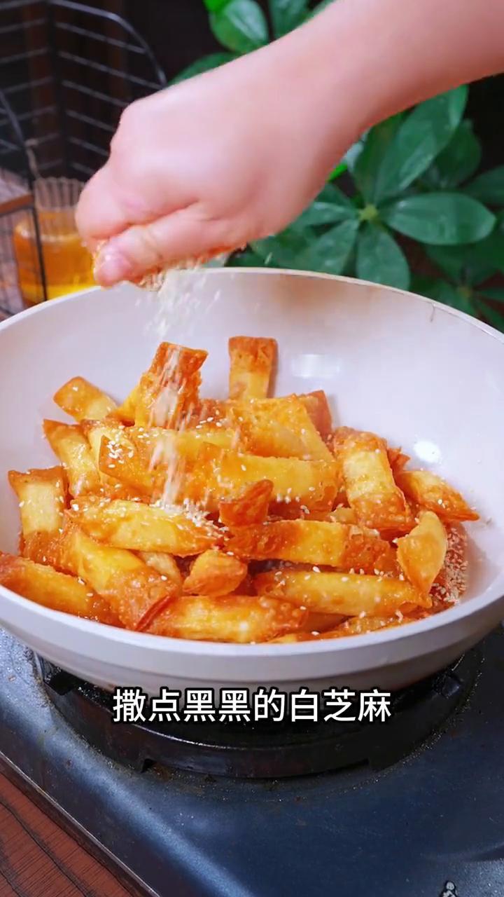 锅包山药酥。 你做梦都想不到,只需要把山药放在馄饨皮上,再给它包裹起来,出锅就是