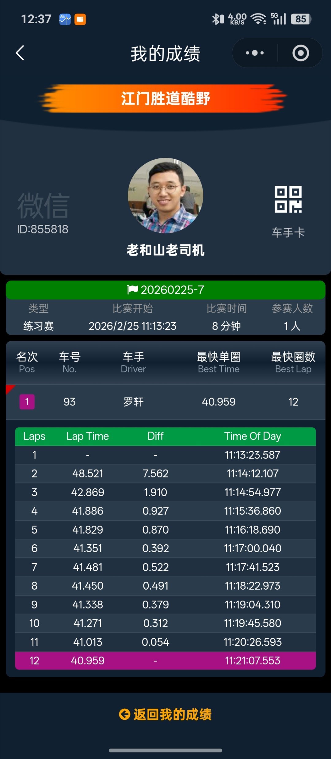拿4T跑了个40秒尾的圈速,暂列总榜第二名,前面只有一个比我轻几十斤的小孩