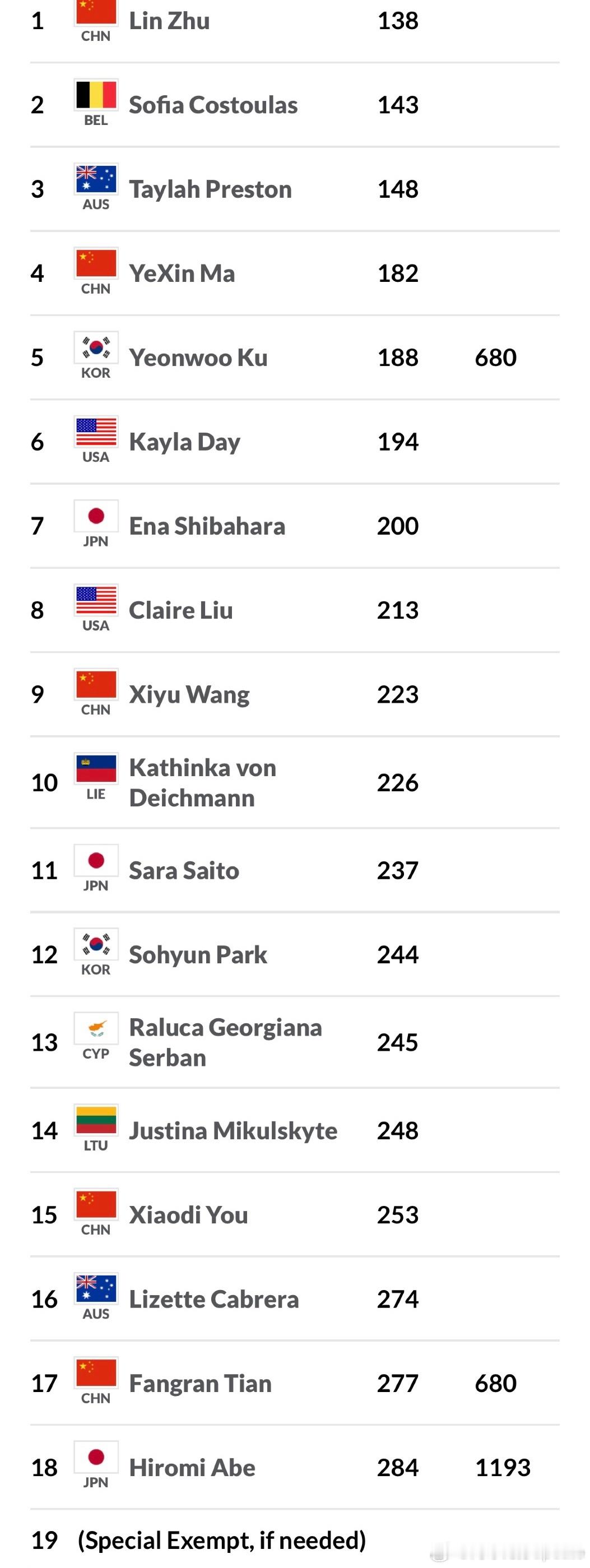 预选:🇨🇳杨一迪、🇨🇳白卓璇、🇨🇳张莹