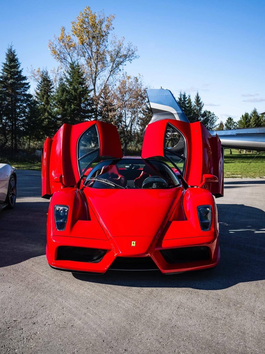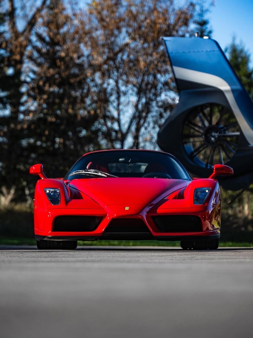 【旧时代的最后纯血—Ferrari Enzo】它是法拉利创始人去世后第一款直接用他名字命的车,也是21世纪第一台跃马旗舰。它不讲情怀,它自己就是传奇的化身。首发搭载6.0L V12自然吸气(代号F140),660马力/657牛·米,升功率110马力/升,当时世界最强自吸引擎。3.65秒破百,极速350km/h+。更重要的是:七届F1车神舒马赫深度参与底盘调校,这车的地盘有“王者签名”。第一台带F1方向盘和碳陶刹车的街车。换挡:F1式6速序列式拨片,换挡仅150毫秒,方向盘集成倒车/模式切换,开创人机界面(HMI)先河。刹车:全球首款标配碳陶刹车的量产车,源自F1下放。空气动力学:主动式套件,无大尾翼但200km/h下压力344kg,350km/h达585kg,靠“看不见的手”压死地面。碳纤维单体壳车架仅92公斤,整车干重1255公斤——比今天的混动旗舰轻了半吨。车门是蝴蝶门,连门槛带车顶一块掀,碳纤维直接裸露,像战斗机座舱。它是法拉利最后一台纯燃油旗舰(LaFerrari已混动)。当年售价60-67万美元,如今顶级车况轻松破300万美元。它不完美,但它是马拉内罗用F1王座期堆出来的“遗书”,每一脚油门都是恩佐时代的回响。