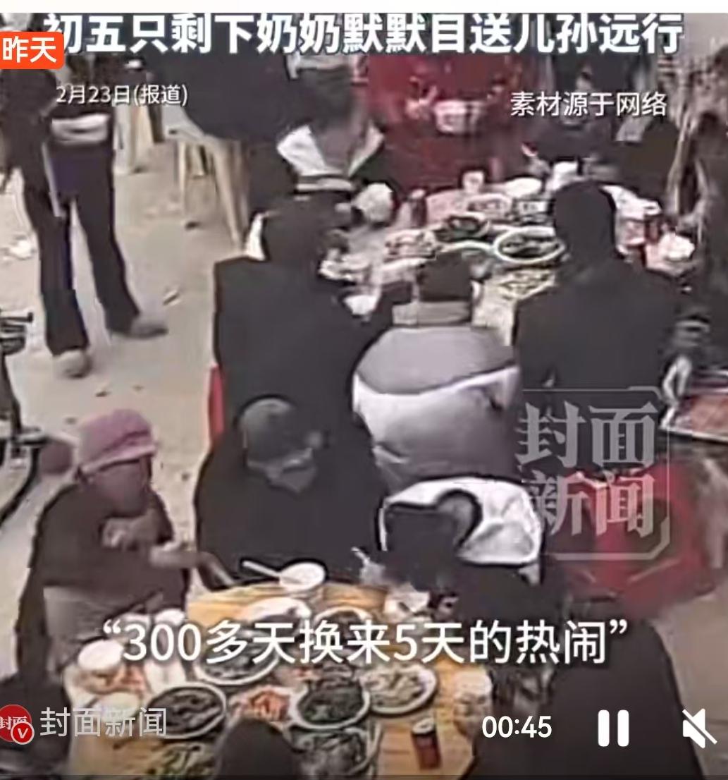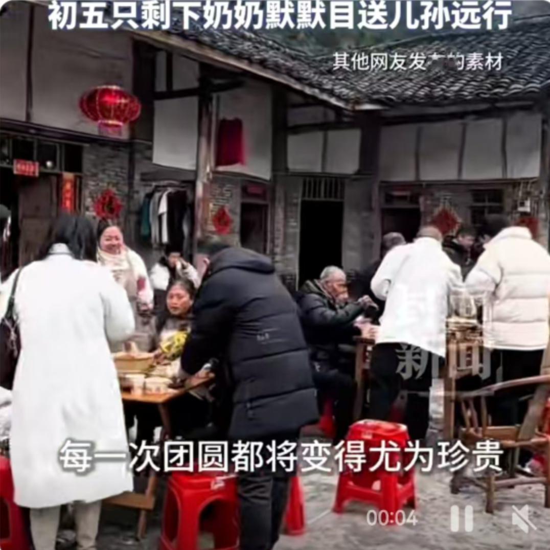 四川绵阳,大年初一的监控画面里,院子里摆满了桌椅,43个人围坐在一起,热气腾腾的饭菜映衬着每个人的笑脸。仅仅过了四天,到了初五,同样的院子,镜头里只剩下一位老人独自站在门口,默默目送车辆远去。这组由王女士发布的监控对比画面,在这个春节假期结束后,击中了无数游子的心。 从喧嚣到寂静,这中间的落差,不仅是数字上的减法,更是中国千万个乡村家庭真实的春节写照。 这43个人的团聚,来得并不容易。王女士提到,为了这顿团圆饭,亲属们从天南海北赶回来,最远的一辆车是从浙江开出,驱车20余小时才抵达绵阳老家。这一路跨越千里的风尘仆仆,只为了那几天的短暂相聚。对于很多在外漂泊的人来说,“回家”这两个字,背后是长途跋涉的辛劳,也是这一年中最温暖的终点。 然而,热闹总是短暂的,留守老人的孤独在离别时刻显露无疑。王女士在描述中提到,爷爷奶奶因年迈本就倍感孤独,春节期间子女返乡,满院子的欢声笑语让这份热闹达到了顶峰,可正因如此,热闹后的冷清才显得更加突兀。大年初一,大家走的时候是成群结队,相送的人群熙熙攘攘;到了初五,最后离去的车辆启动,后视镜里只有奶奶一个人的身影。她站在那里,看着车子开走,眼神里是不舍,也是习惯了落寞后的无奈。 这并非个例,而是当下乡村现状的一个缩影。网友“百度网友5a4fca49c”的评论获得了2290次点赞,他说:“奶奶如果不在了,这43个就聚不齐了。”这句话戳中了无数人的痛点。老人在,家就在;老人若去,兄弟姐妹便成了亲戚,那个名为“家”的地方,也就真的只剩下了回忆。所谓的“父母在,人生尚有来处”,在这一刻变得具象化且沉重。 与此同时,网友“所谓天下袖手风华”的那句“如果在家乡可以生活的很好,谁愿意都出去啊”,也道出了现实的两难。广东、浙江、青海……评论区的IP地址遍布全国,大家都在为了生计、为了更好的发展背井离乡。如果不走出去,如何撑起家庭的开销?如果走出去,又如何陪伴年迈的父母?这似乎成了一个无解的循环。 监控视频下的这一幕,没有刻意的煽情,却最真实地记录了亲情与现实的博弈。奶奶目送儿孙远行的背影,是春节假期结束的信号,也是新一年奋斗的开始。我们都在为了生活奔波,却往往忽略了,那个站在村口目送我们的人,正在以我们肉眼可见的速度老去。 或许,我们无法改变离别的常态,也无法立刻解决城乡发展差异带来的务工难题。但至少,在能够相聚的日子里,多陪老人说说话,多拍几张照片。毕竟,那个无论多晚都为你亮着灯的老家,那个能聚齐43口人的院子,才是我们在这个世界上最大的底气。别让等待,成了永远的遗憾。 以上内容仅供参考和借鉴