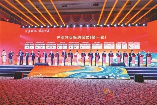 莆田市民营经济暨产业发展大会昨日举行。图为产业项目签约仪式现场。全媒体记者蔡昊摄