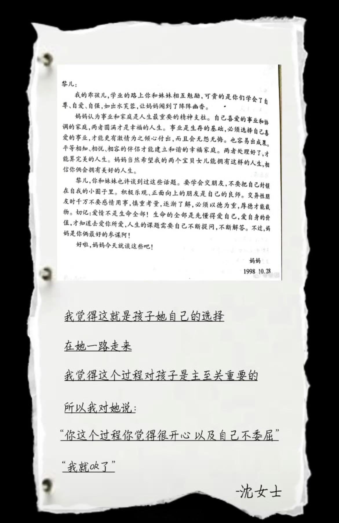 曾黎晒母亲1998年写给自己的信1998年的笔尖落在信纸上,每一笔都是妈妈的思念