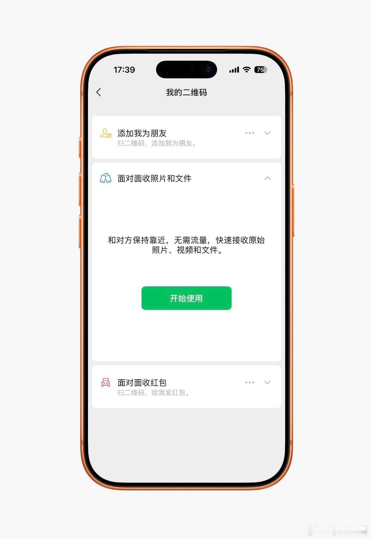 不能用发照片当理由加微信了微信新推出面对面收照片和文件功能,不需要添加好友。路径