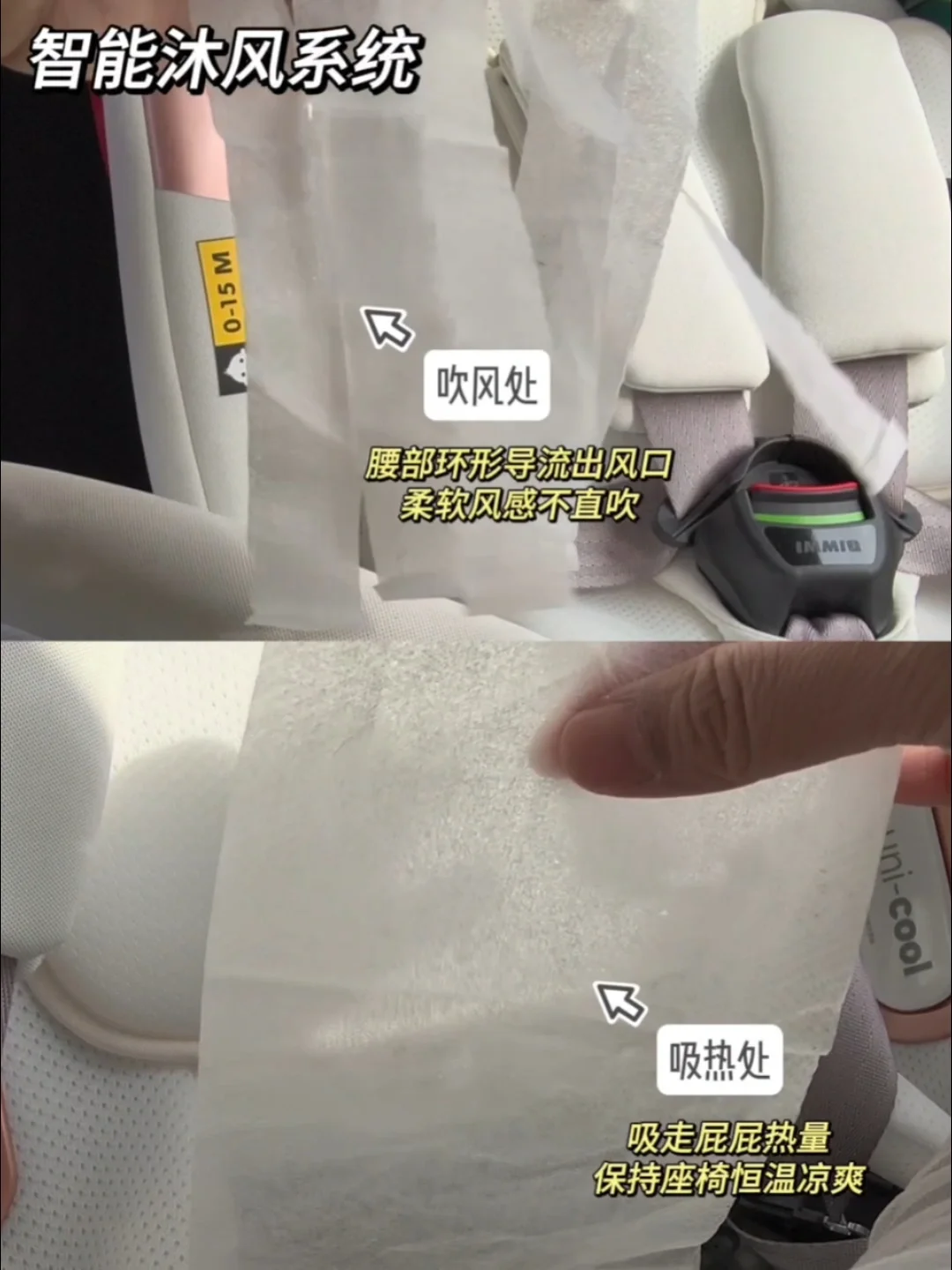 其中,最戳我的是它这个全透气呼吸舱,没有海绵结构,内衬垫都是用透气面料覆盖的,再搭载Uni-cool智能沐风系统,上下循环风柔和舒适,整个座舱都是凉凉爽爽的,就好像给宝宝👧🏻装了台“隐身小空调”,春节去姥姥家5小时,孩子脖颈后没有一滴汗,后背也是干干爽爽的,还在车上美美地睡了个午觉💤~