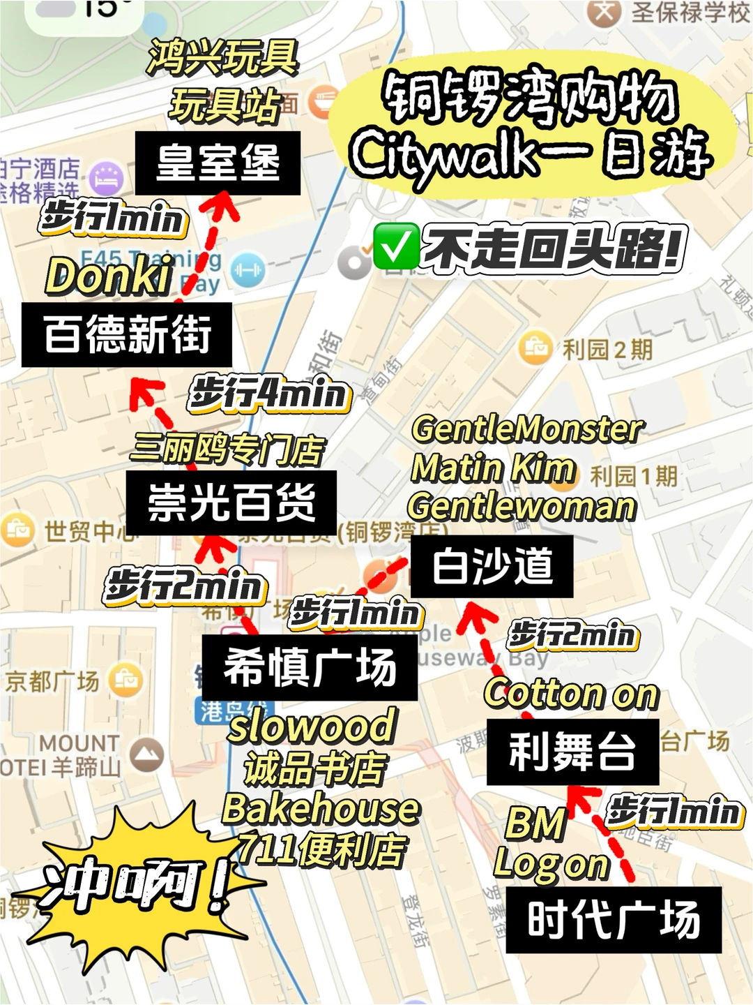 📮【路线安排】:时代广场—利舞台—白沙道—希慎广场—崇光百货—百德新街—皇室堡