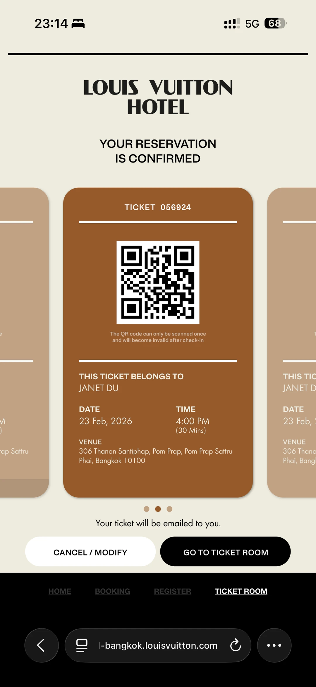 预约方式:https://hotel-bangkok.louisvuitton.com/LV/booking