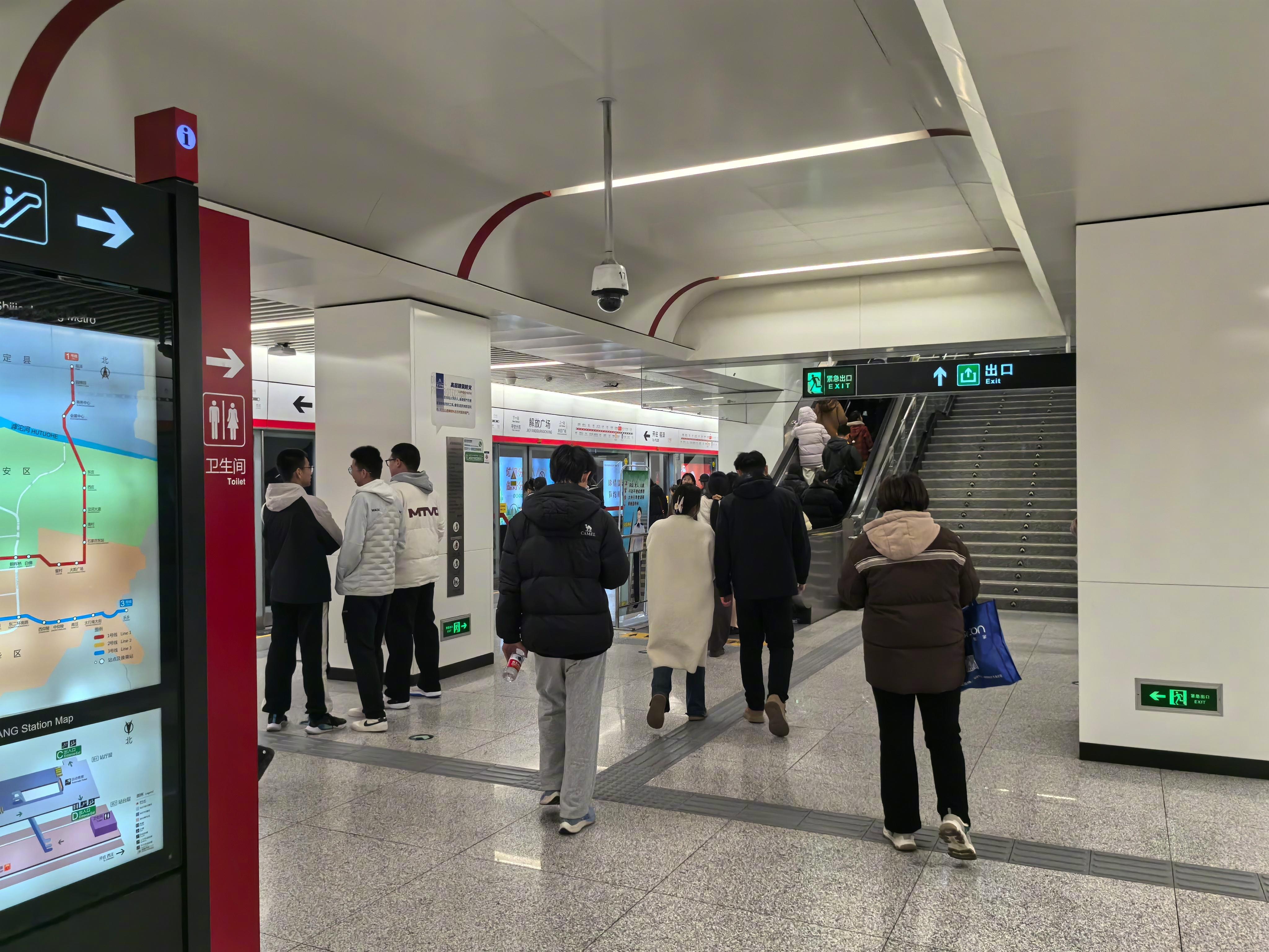 北京地铁远不如以前拥挤了 石家庄地铁乘客年龄中位数28,北京38。 石家庄·解放广场