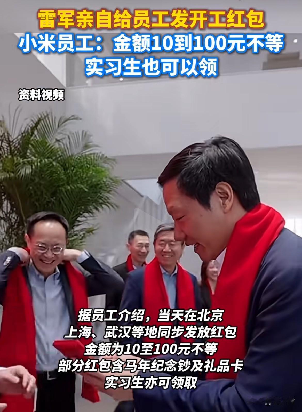 雷总发开工红包了,10元至100元,简直太土豪了。