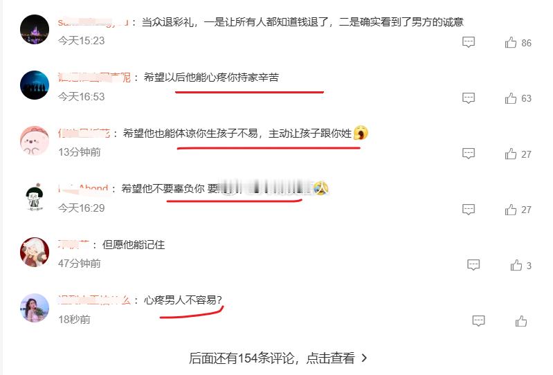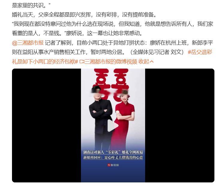 新娘说退18万彩礼是心疼丈夫的不易 人家夫妻的婚姻中,展示了彩礼、感情和相互体谅,倒是一些网民替女方打抱不平,只给人家的婚姻算经济账,算谁多占一分钱的便宜、谁少占一分钱的便宜这些网民看婚姻,是打算拍卖吗?价高者得这些人在前两年,也是大骂胖东来提倡员工不要彩礼的那些货吧父亲从女儿20岁起就灌输不要彩礼,岳父退彩礼是卸下小两口的经济包袱 ,热点观点 ,获退的18万彩礼已所剩无几