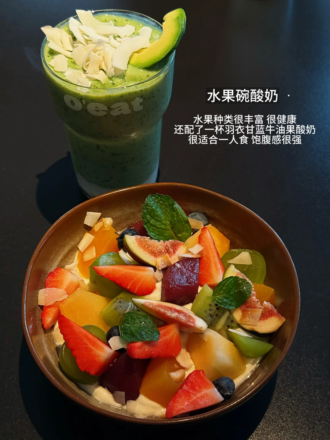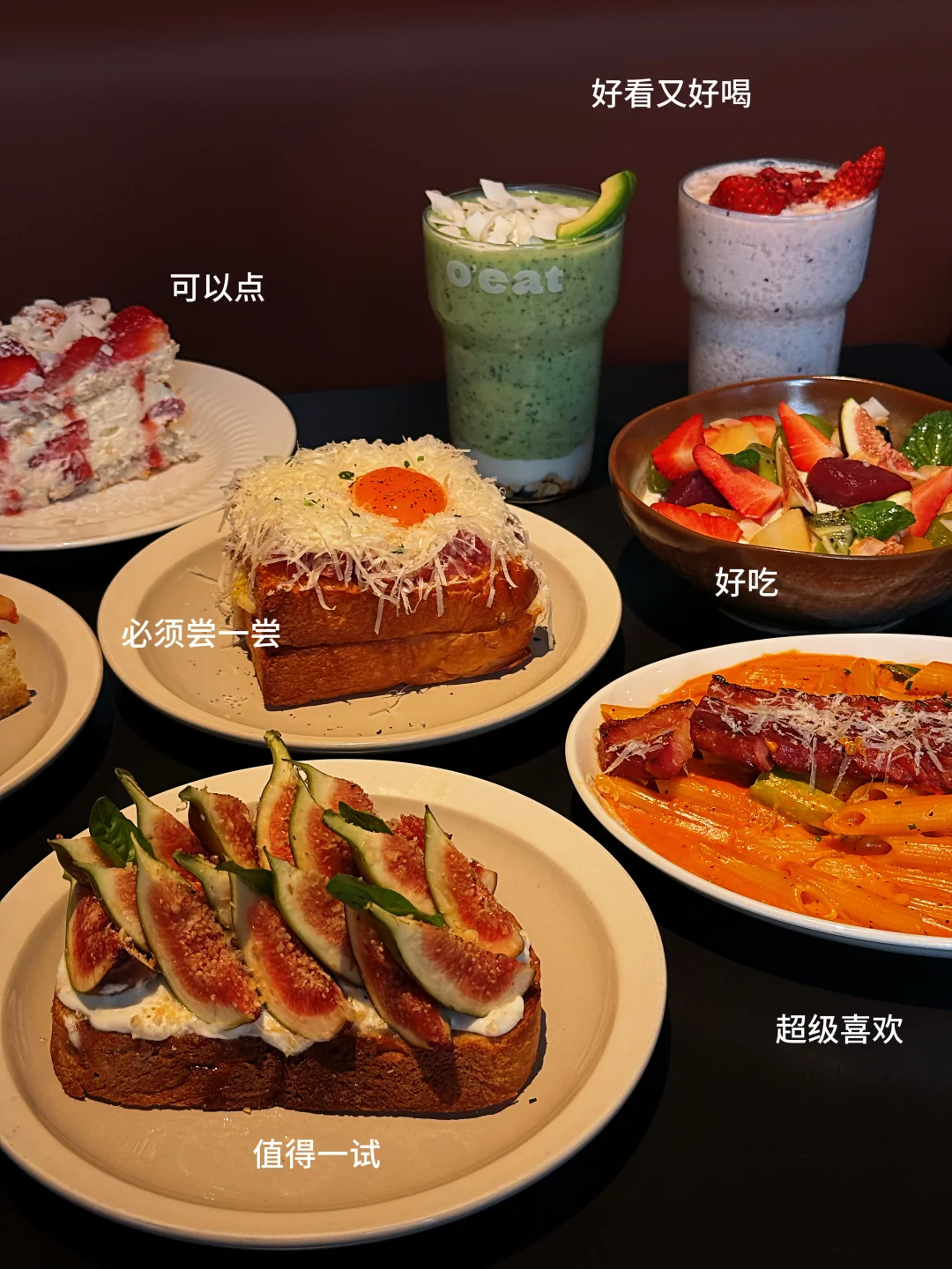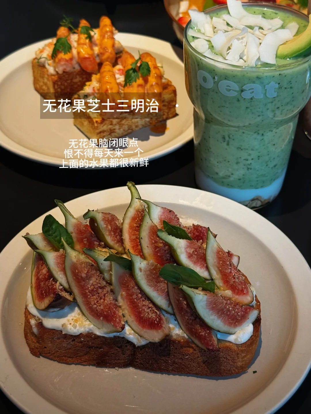 好优秀的溏心蛋!!! 真的和图片上一模一样的那种 搭配了培根洒满了芝士碎 口感层次很丰富! 无花果的也好好吃啊!水果很新鲜 小甜品也是颜值口味都在线的那种