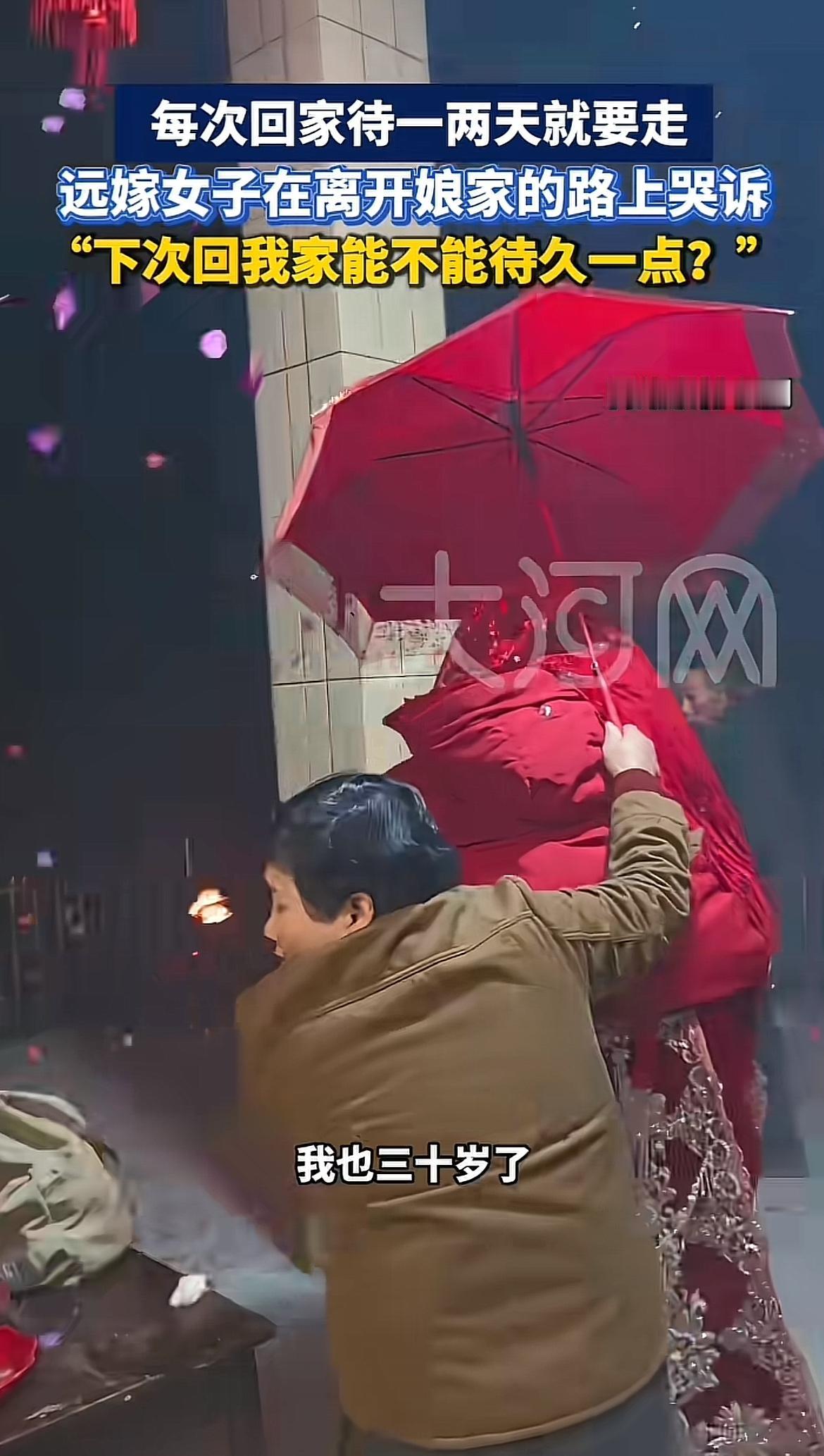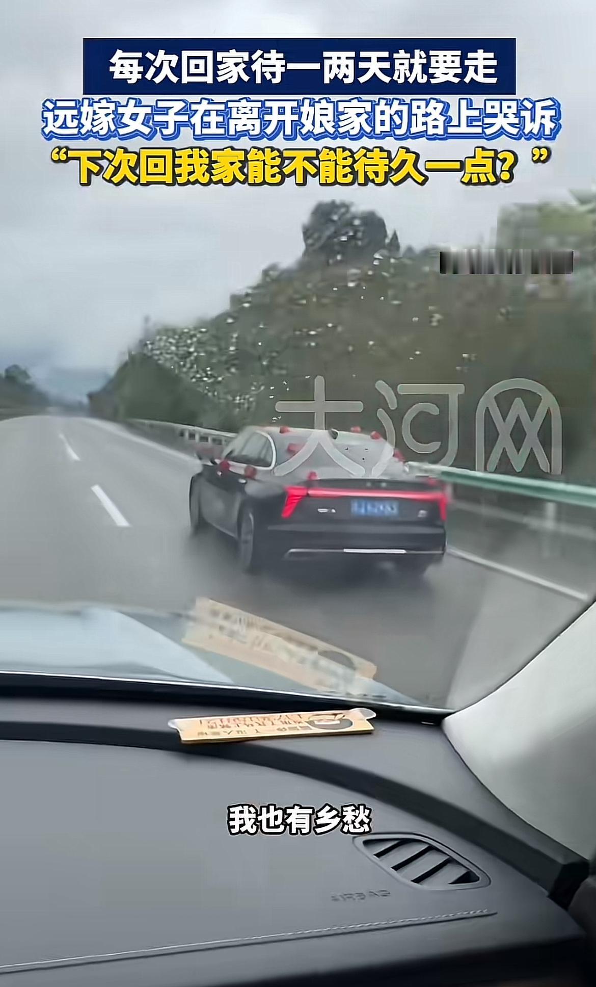 江苏这位远嫁女子的哭诉太扎心了。她当初远嫁,在婆家努力适应,可老公回她娘家却待不住。父母精心准备,拿出最好的房间和食材,满心欢喜盼着女儿女婿,老公却要么玩手机,要么催着返程。 远嫁本就不易,是告别原生家庭奔赴陌生环境的勇敢之举。很多女孩为了爱情远走他乡,把委屈藏在心里。婚姻里付出该是相互的,妻子努力融入婆家,丈夫也该体谅妻子的乡愁,尊重她的原生家庭。希望这位老公能理解妻子,下次回娘家多待些日子,别让爱她的人再伤心。