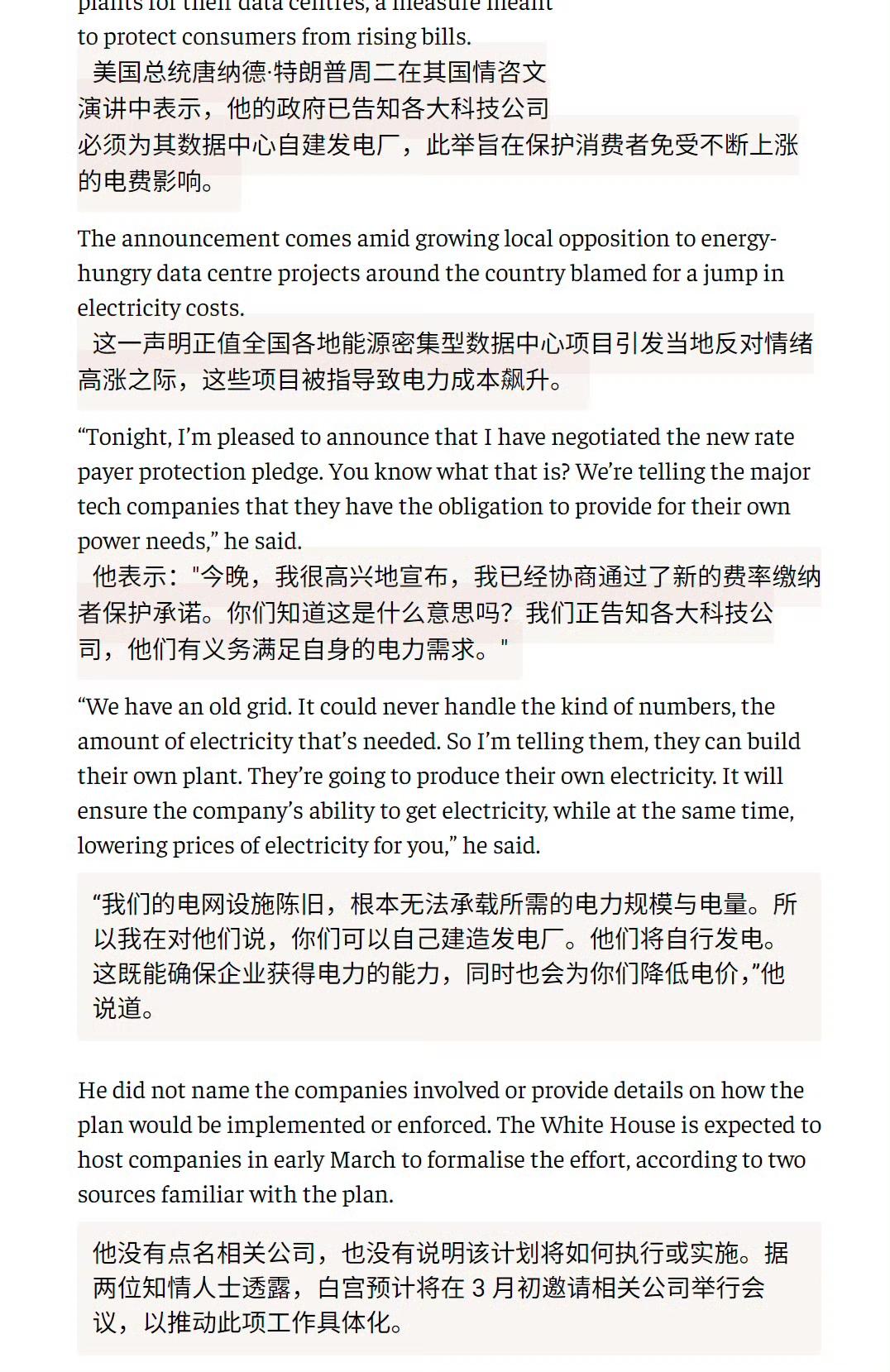 特朗普要求美国AI公司自建电厂。跟我们完全反着来,我们的企业要想自建电厂非常困难