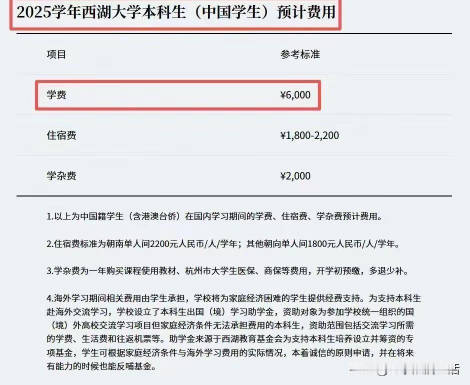 凭什么西湖大学敢收留学生每年35万的学费,却只收本土学生6000块学费? 这个2018年才有的大学,甚至很多人都没听说过,它却标榜着哈弗、纽约大学的收费标准,把最好的资源留给自己家的孩子。 西湖大学从建校开始就立下“不拼规模,只拼质量”的规矩,把更多的精力和资源倾斜到搞科研上,他们从来不靠留学生数量来进行刷榜。这么硬核的底气全靠实验室里的那一项项硬实力。现在建校还不到十年的时间,他们的人均论文影响力、科研成果已经可以跟国内一些985/211顶尖高校掰掰手腕了,甚至被《Nature》评为“值得关注的亚洲科研新星”。 创始人施一公院士满满的家国情怀,他放弃国外优渥的待遇,一心扑回祖国搞教育! 中国的现代化建设,主要依靠中国高科技人才和优秀大学生来努力实现。高等院校在招生、培养学生等方面,应该向施一公院士领导的西湖大学学习!彻底抛弃崇洋媚外的思想,把学校教育工作重心 ,摆到培养中国式现代化建设优秀人才上来! 有网友说,中国的教育资源就应该为中国学生服务,外国留学生不能免费享受中国的教育资源,更不应该给他们超国民待遇,因为在世界其他国家也是没有先例的,西湖大学的立场绝对值得肯定,西湖大学践行了教育为学生服务的宗旨,实践了教育为民的誓言。 学校是培养人才的摇篮,我们普通老百姓能够享受低价学费,是因为有人为我们负重前行,而那些留学生只是来窃取胜利果实的,并且大概率会成为我们的竞争对手,那些公知们这时候为什么不提倡留学生和国际接轨了呢?