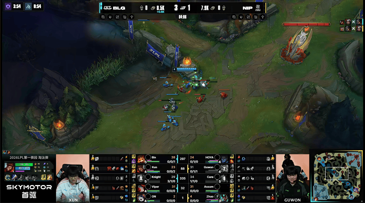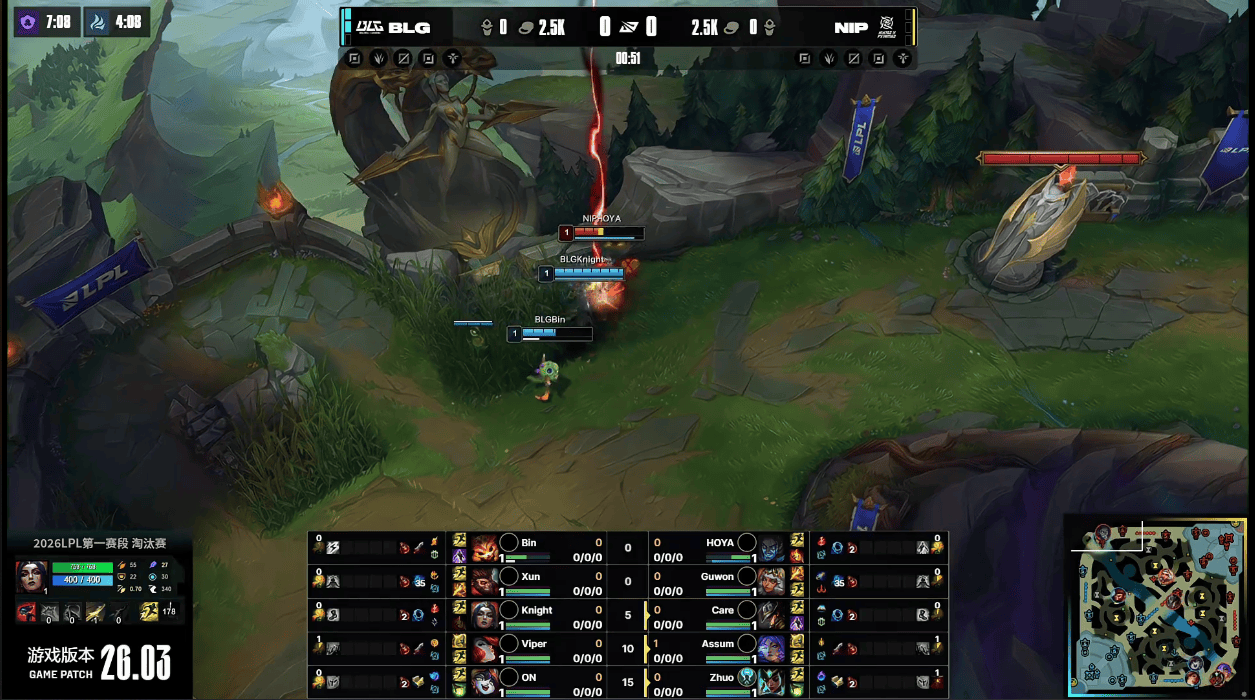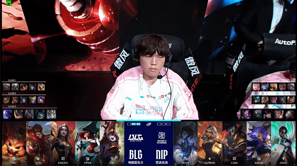 BLG选用:Bin纳尔;Xun猴子;Knight妖姬;Viper女枪;ON露露