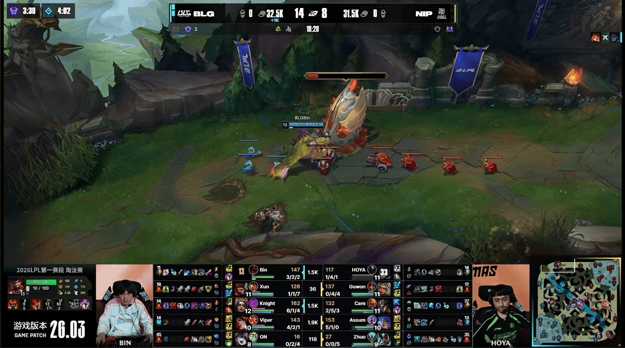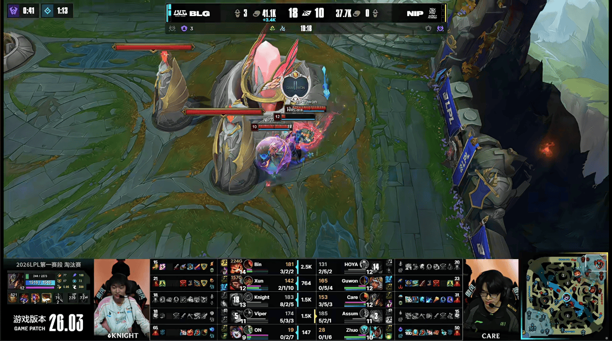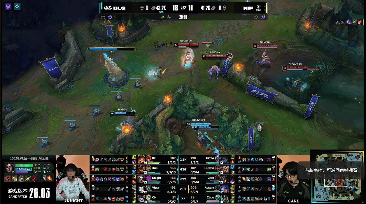 虎扑02月25日讯GAME3:BLG蓝色方;NIP红色方