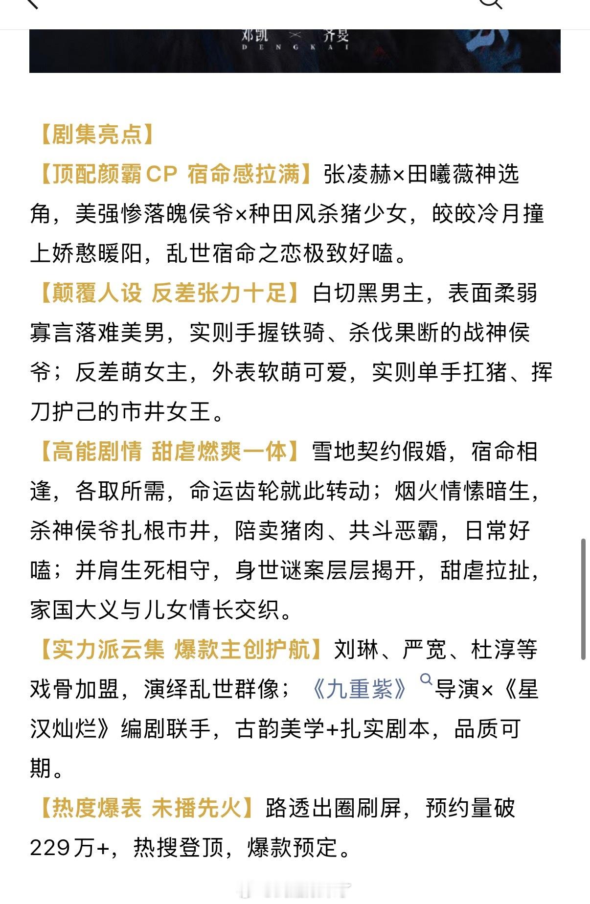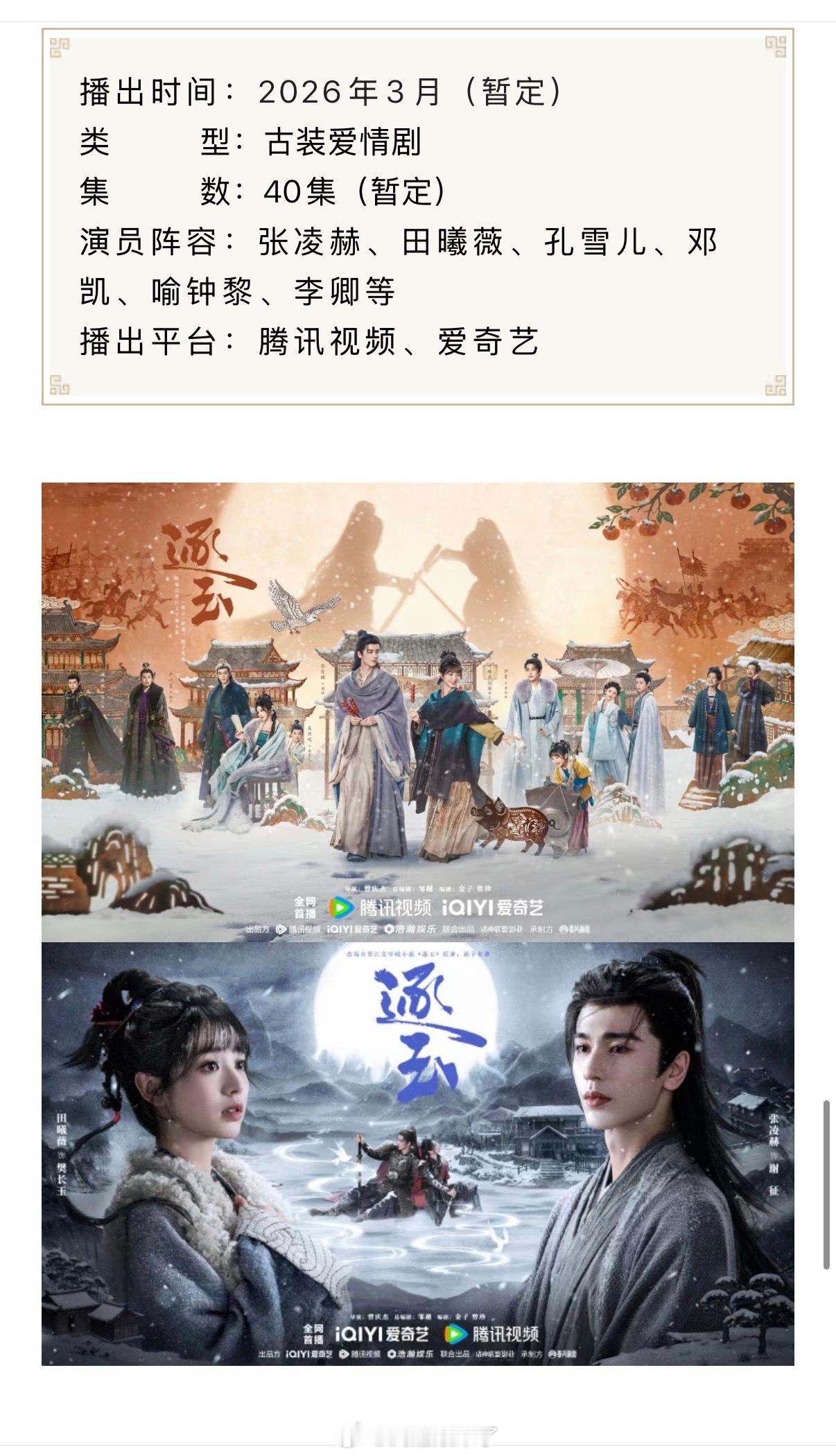 张凌赫田曦薇(排名不分先后)主演《逐玉》开启播前招商,燥候谢征樊长玉