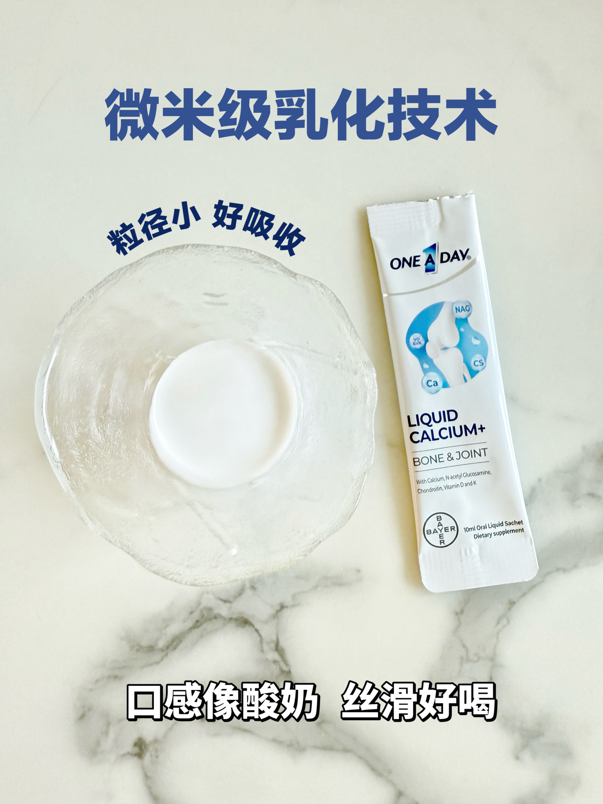 中老年人的生活质量高低跟行动力有很大关系,试想从沙发上站起来都困难,或者是摔一跤就骨折躺十天半个月都养不好的生活,所以补钙非常重要。但是补钙容易被放弃,常常因为钙太难吃,以及吃了也无效。拜耳液体氨糖 采用超微乳液技术,入口是酸奶味,好吞咽;通过高吸收率的钙+vd补充骨密度,氨糖滋养软骨,硬骨软骨一起补,二者共同作用提升行动力,坚持补充能感受到关节僵硬和疼痛有所缓解。