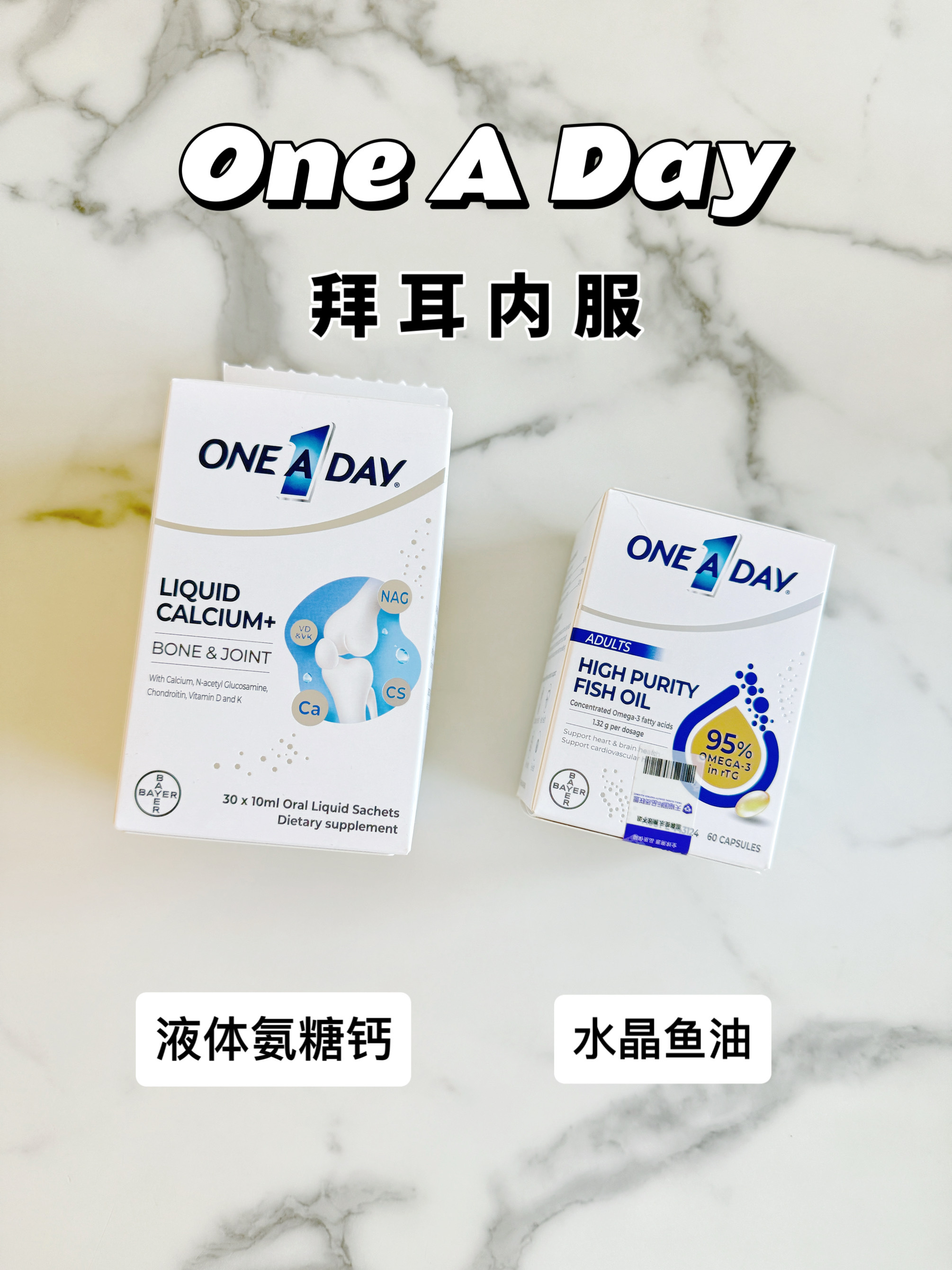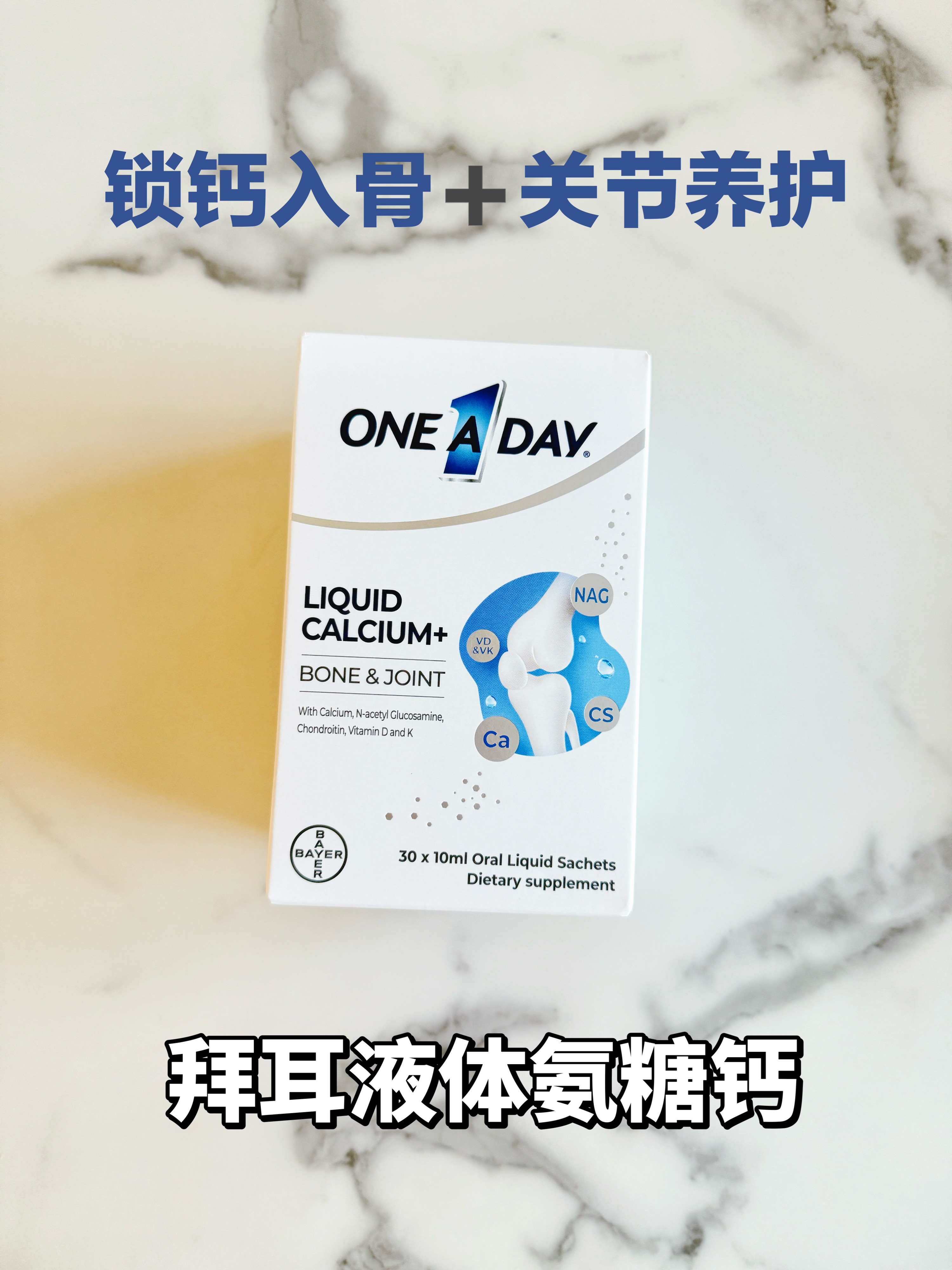 新年第一团,我们今天开拜耳One A Day液体氨糖钙和鱼油。