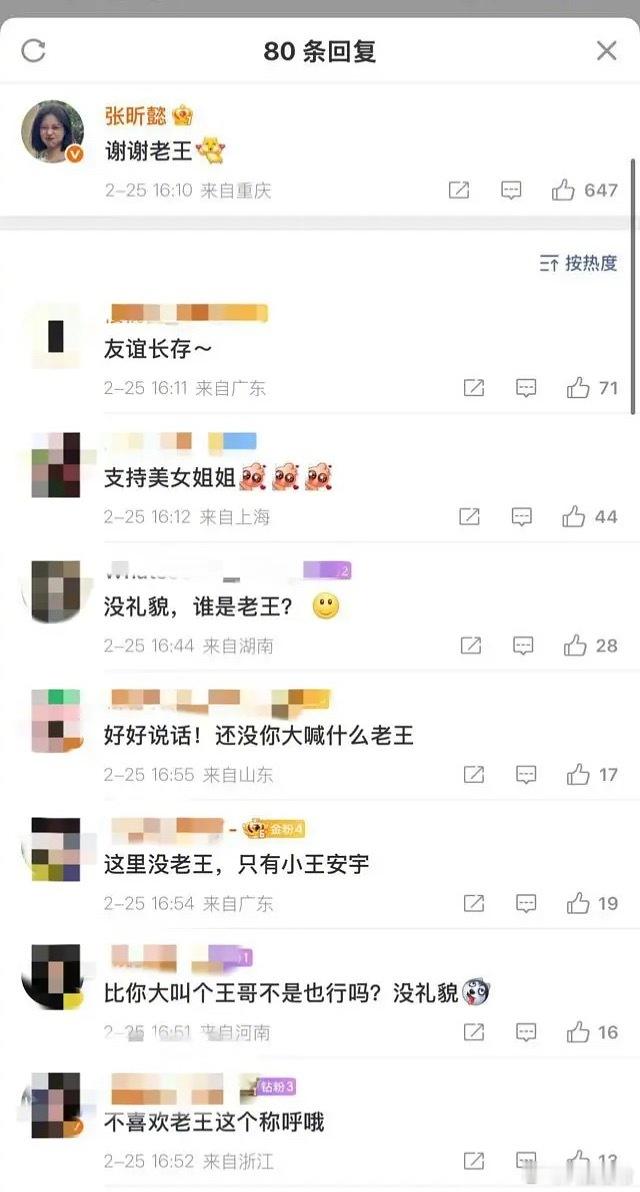 王安宇帮张昕懿宣传新剧,张昕懿回复谢谢老王,王安宇粉丝说张昕懿没礼貌