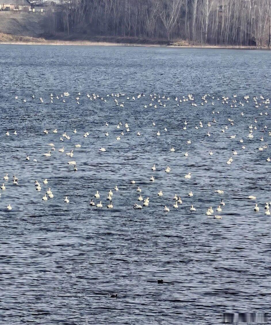 郑州中原区也有天鹅湖了 2月24日,郑州市中原区常庄水库迎来罕见盛景——数百只白天鹅如雪花般飞抵水面,与库区原有水鸟、水鸭结伴游弋、栖息觅食。在水库中心水域,一群白天鹅正在水面上畅游。远远望去,这些天鹅有的仰着头,有的把头扎入水中觅食,同时也有其他的水鸟飞来加入天鹅群中。这些天鹅悠闲自在地戏水,勾勒出一幅和谐自然的美丽生态画卷。
