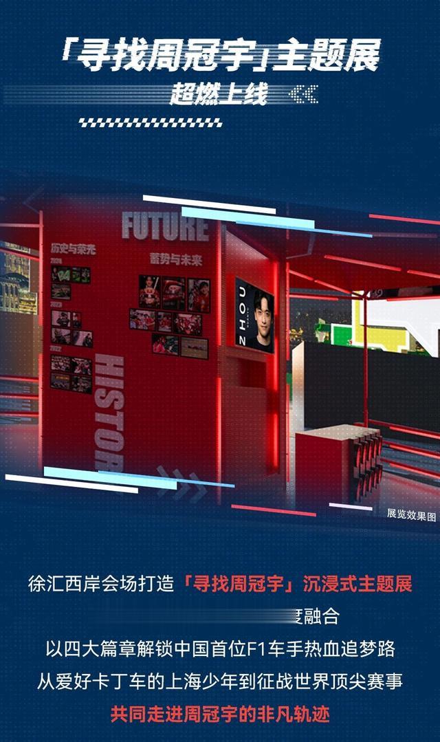 作为本届格子旗嘉年华的核心亮点之一,位于徐汇西岸的“寻找周冠宇”主题沉浸式展览,将赛车激情与城市文化深度融合,旨在打造一场兼具体育精神、科技互动与情感共鸣的多维体验。展览以中国首位F1车手周冠宇的成长历程为主线,通过“梦想的摇篮”“通往F1的阶梯”“历史与荣光”“蓄势与未来”四大篇章,系统呈现中国首位F1车手从爱好卡丁车的上海少年到征战世界顶级赛事的非凡轨迹。活动期间,周冠宇也将亲临嘉年华现场,与广大车迷分享他的人生经历。