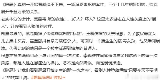第一次见1还没有播完催2的剧《除恶》后劲真的太大了,看完满脑子都是剧情,忍不住疯